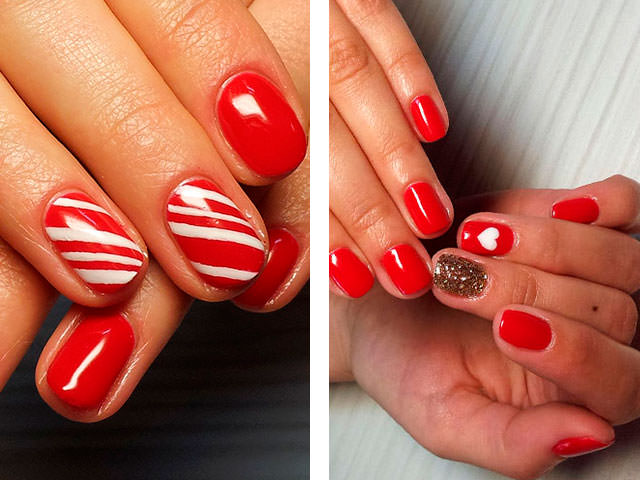 Pretty relevant and beloved red color on the nails. Stylishness and originality of the design of manicure gel polish can be obtained by combining red with transparent, shades of white and black varnish.