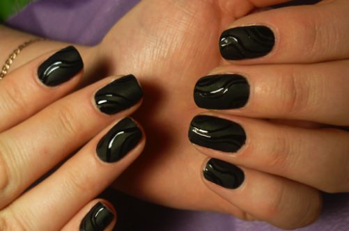 Compete with a classic black manicure can shade of coal-gray gel polish, with a variety of textures.