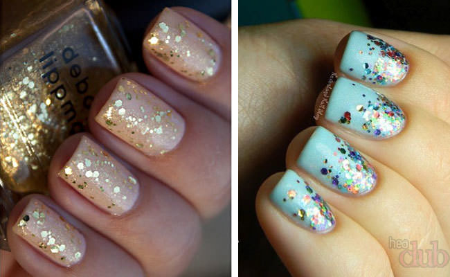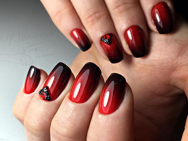 The smoothness in the transition of one color to another on short nails is mesmerizing. The main thing is to correctly arrange the colors, light shades at the base go dark to the tips of the nails. Thanks to this, the nails are visually lengthened. On short nails, shades look great: green, blue, purple, red and gray. The trend of this season will be the stylish design of the ombre manicure with sparkles.