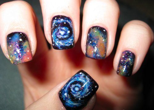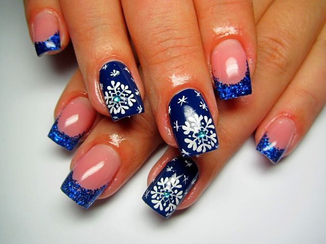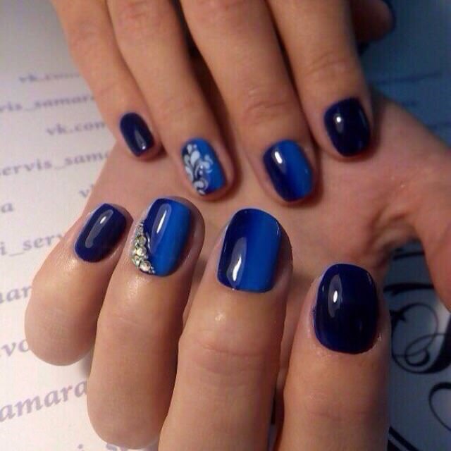 Short nails with dark blue gel polish are no less popular especially for the cold season. Design is winter and space, daily and festive.
