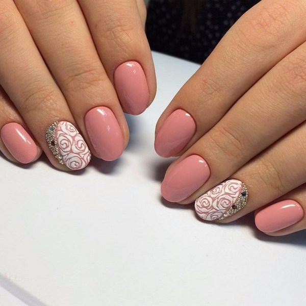 Fashionable shades for short nails are warm shades with pastel colors, they are versatile and suitable for any style of clothing. Manicure gel polish with pink or peach color gives the image a delicate femininity.
