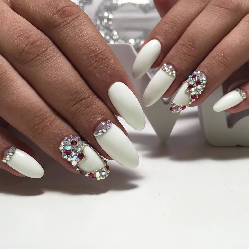 The main thing is not to forget about the sense of proportion in the number of strasses, the manicure should be exquisite, and not dull and tasteless.