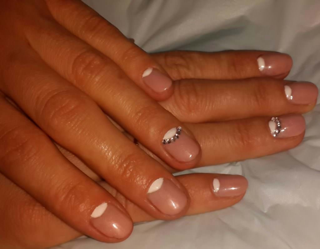 The lunar manicure will be given originality by strasses laid out by a crescent on the base of the marigold. The bulge of the "moon" can be given by strewn it with a scattering of small stones.