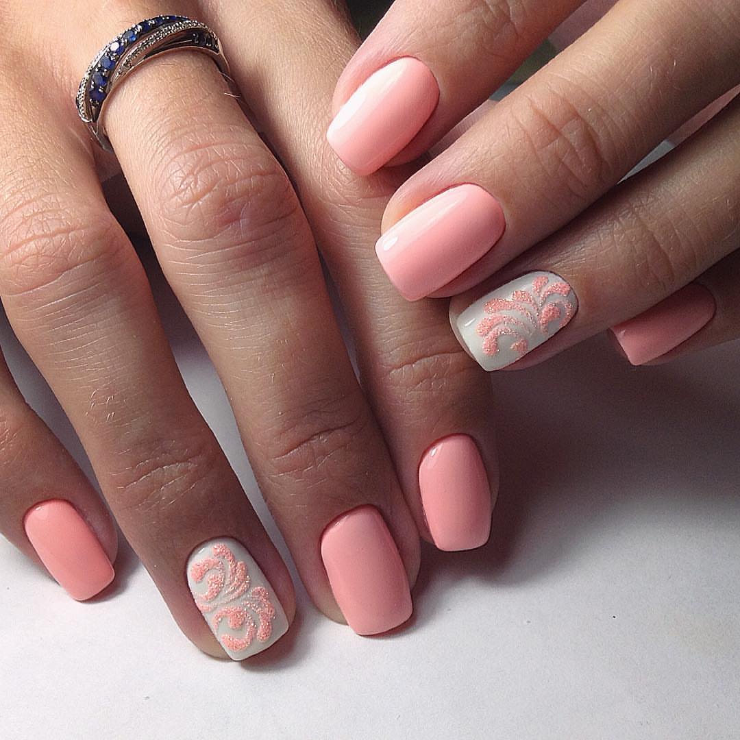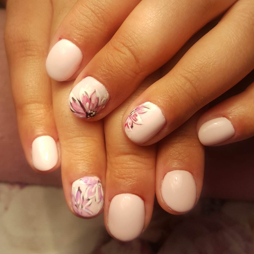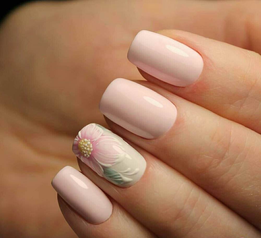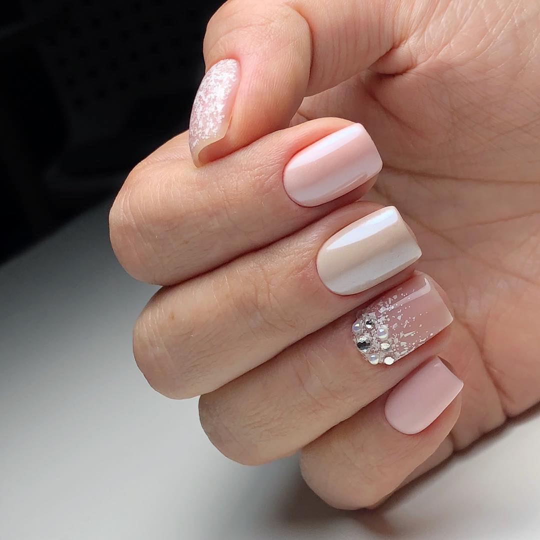 When we talk about colors when creating a gentle manicure, we primarily represent pastel colors. It can be any color scheme from pale blue to completely white.