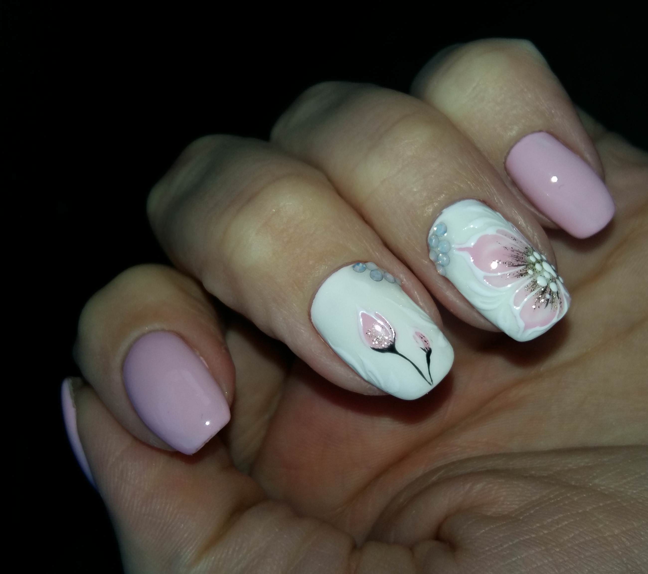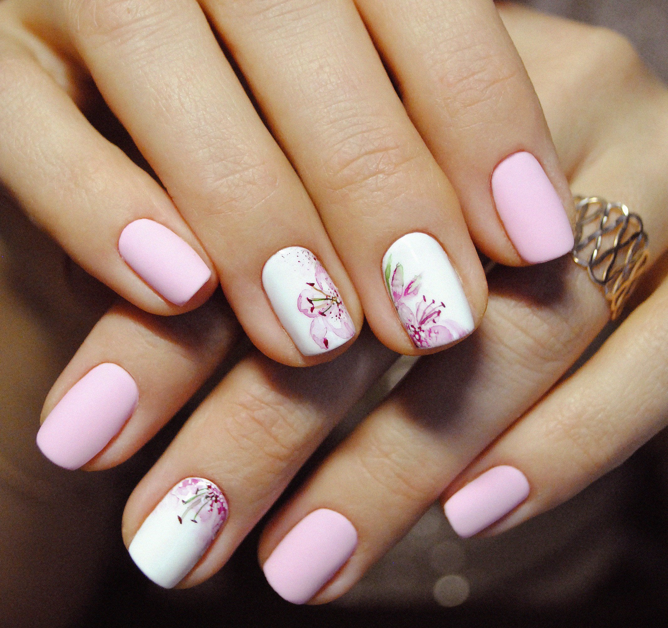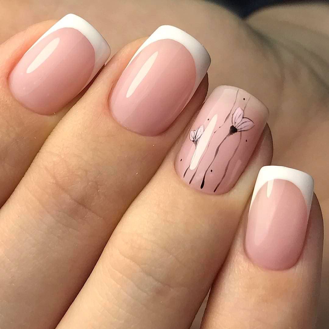 When we talk about colors when creating a gentle manicure, we primarily represent pastel colors. It can be any color scheme from pale blue to completely white.