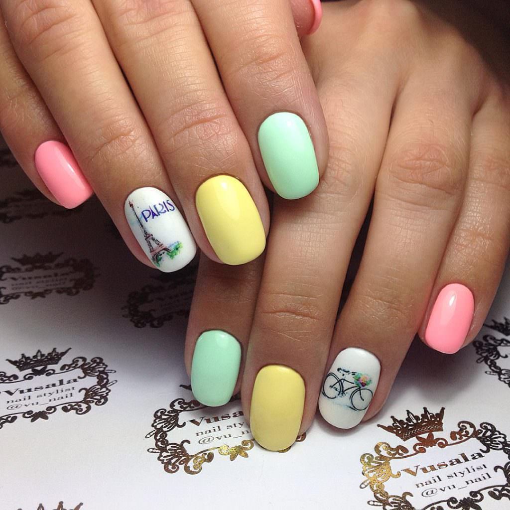 A variety of textures will be fashionable in the season, traditional glossy varnish is especially popular. Quite popular will be: metallized surface, "cat's eye", matte coatings, decor of sequins, sand, powder and microbeads.