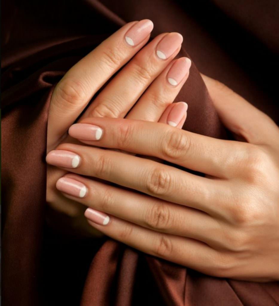 The moon manicure looks very impressive on oval nails, while remaining elegant and laid back.