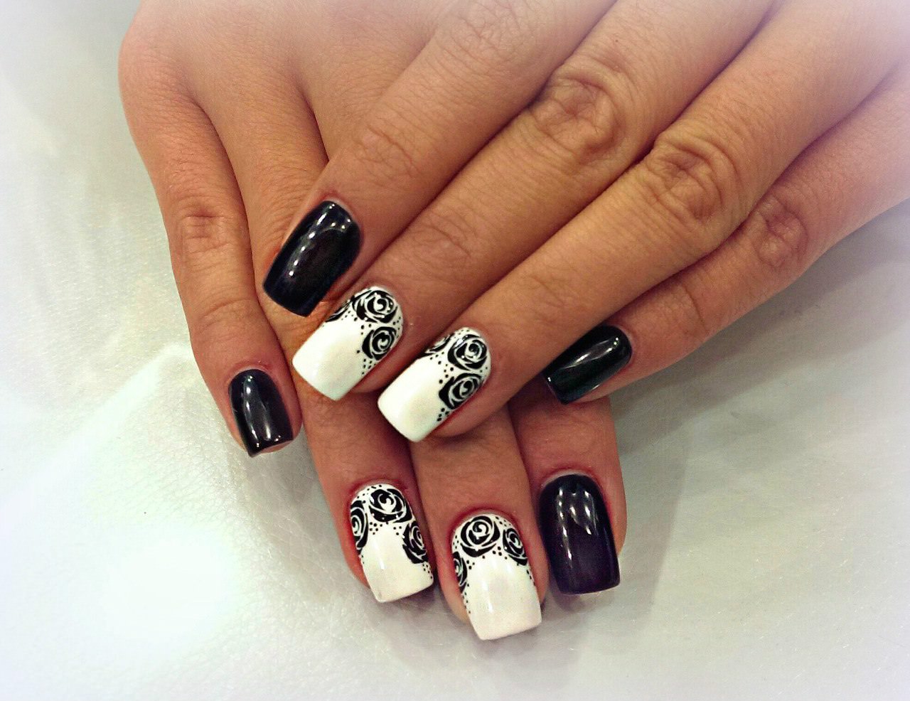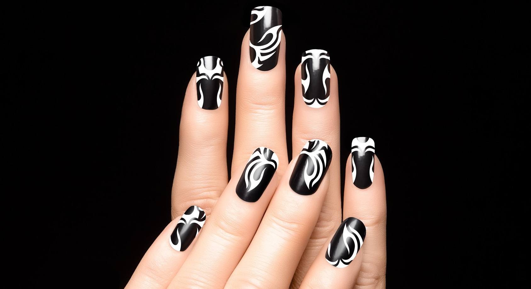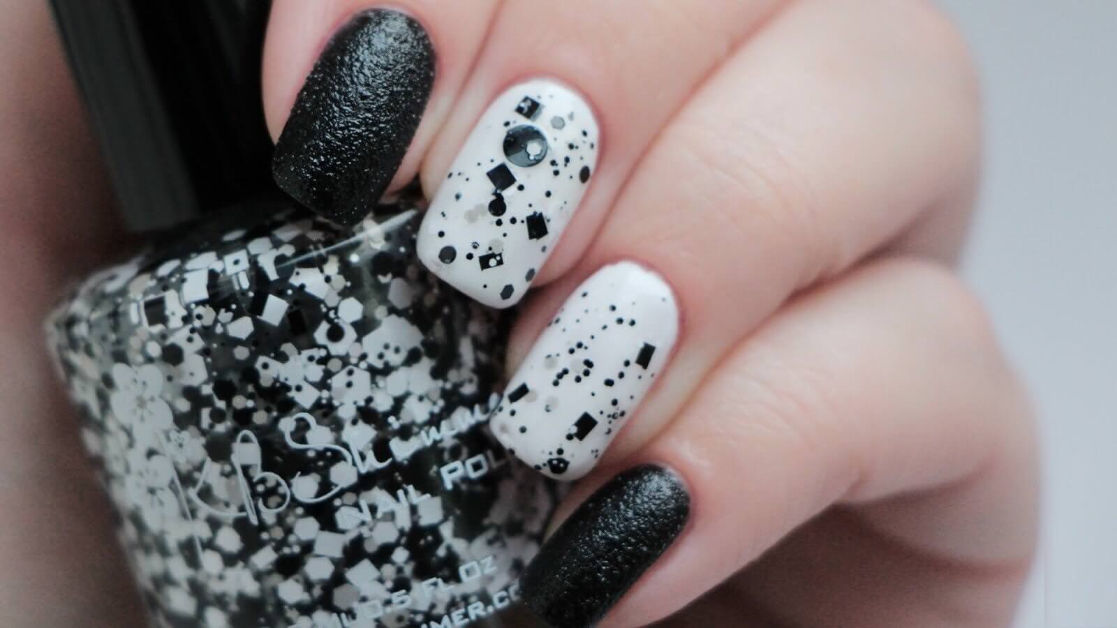 Stylish black and white manicure.
