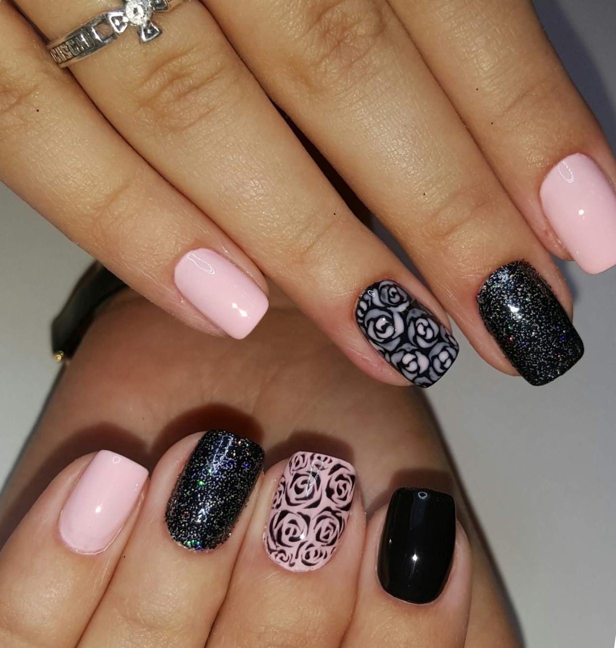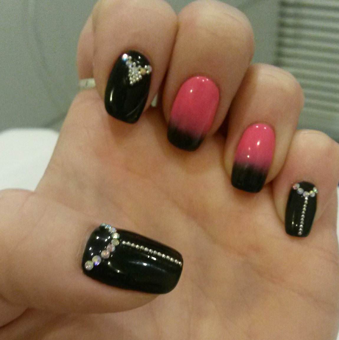 Romantic and bright black and pink manicure