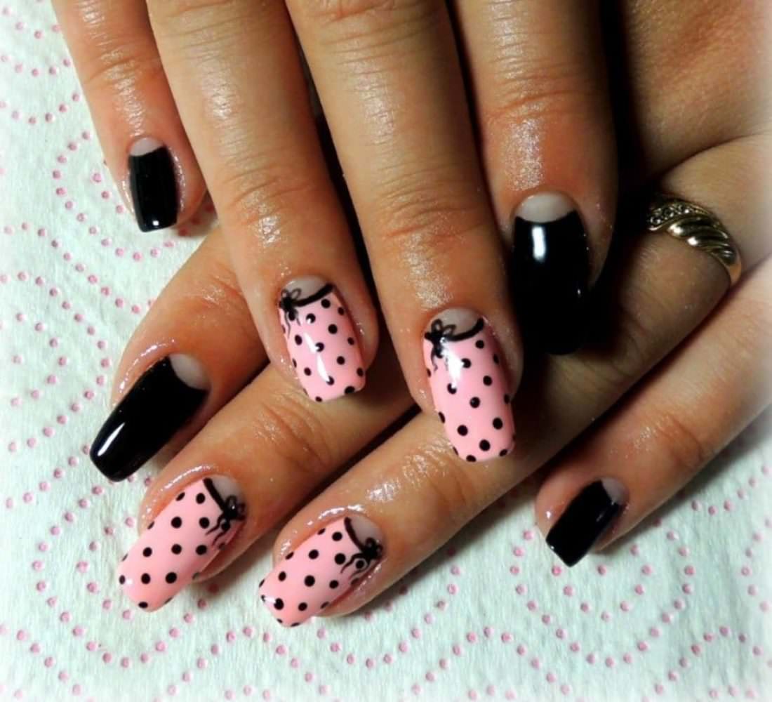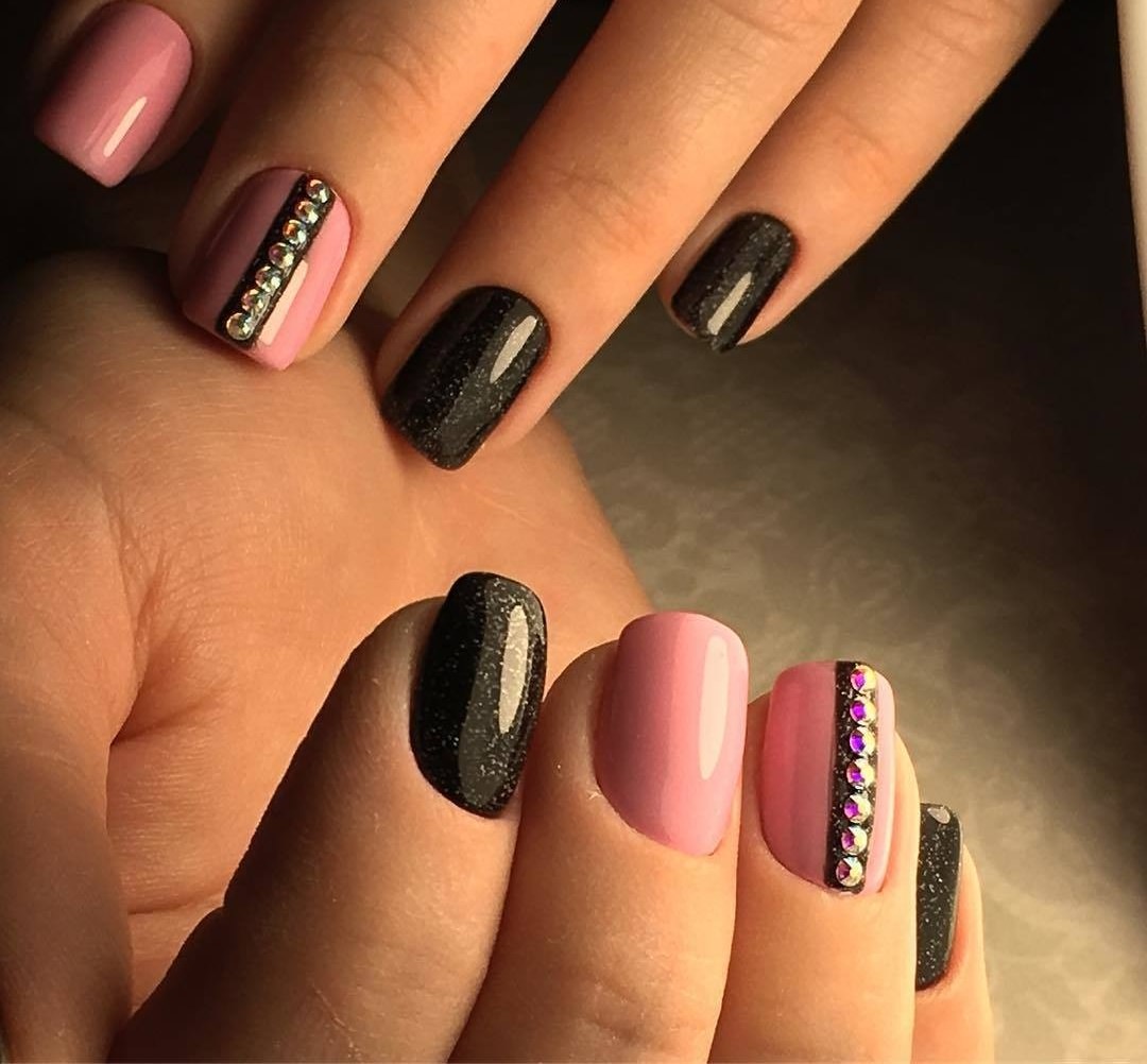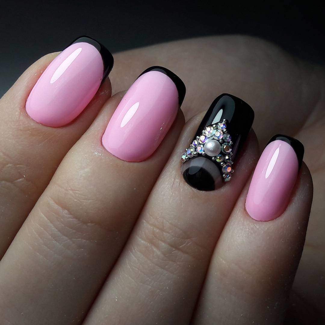 If you want a bright mood on your nails, then choose juicy pink shades. If, on the contrary, you want to calm the rich black color a little, then choose pastel pink tones.