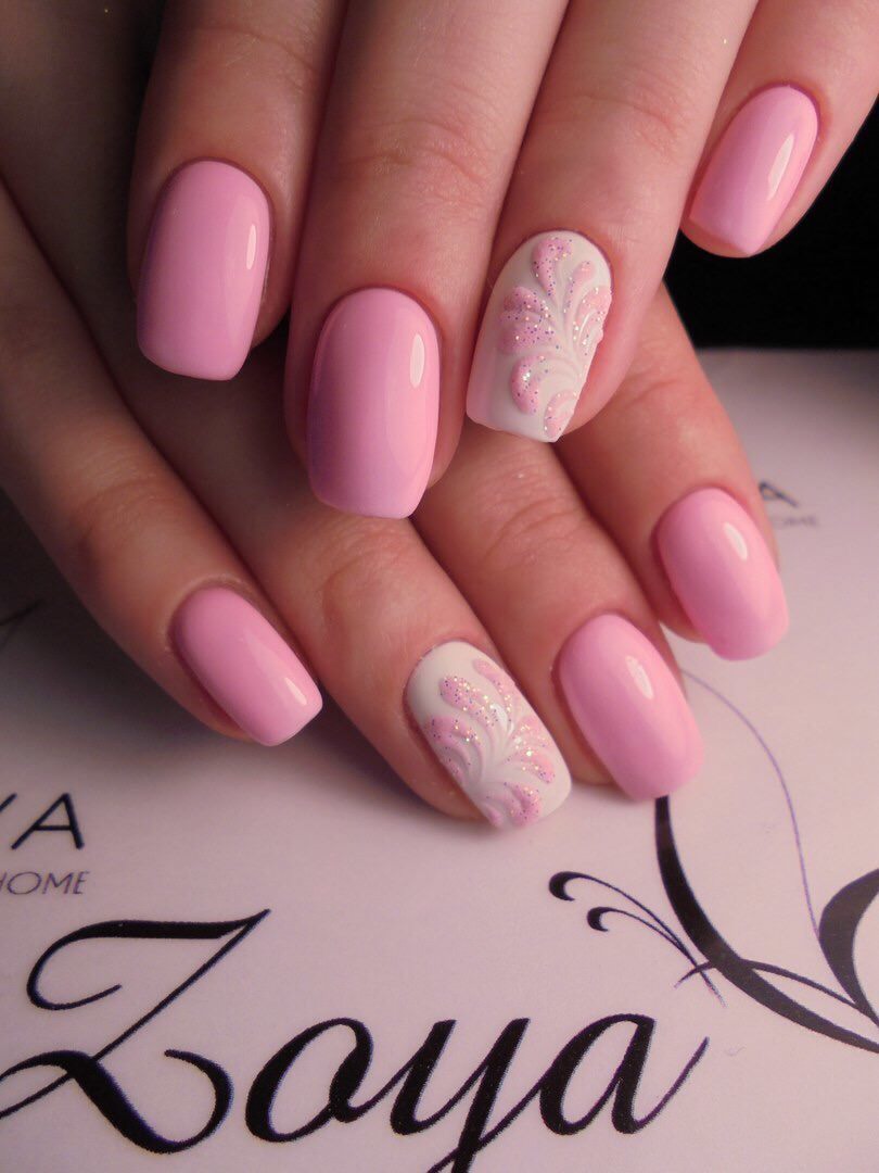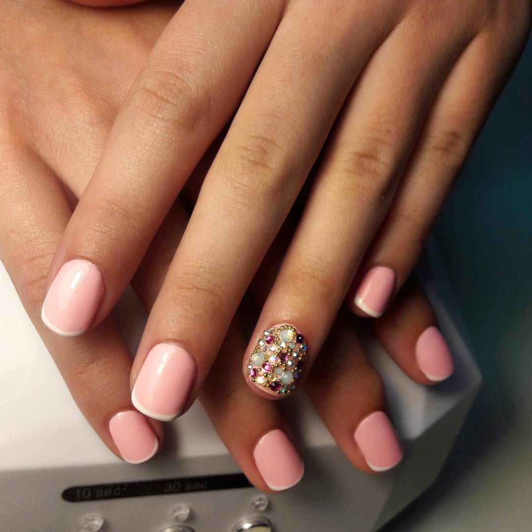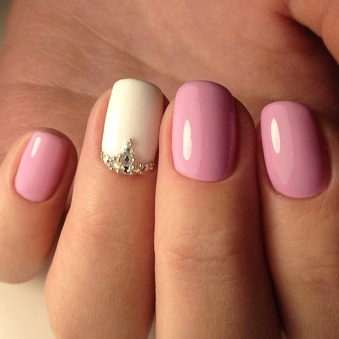 However, at present, girls increasingly prefer pastel shades of pink. If the monophonic coating does not suit you, then you can easily add several design elements to choose from. It can be neat strasses, sparkles or a design with a slider.
