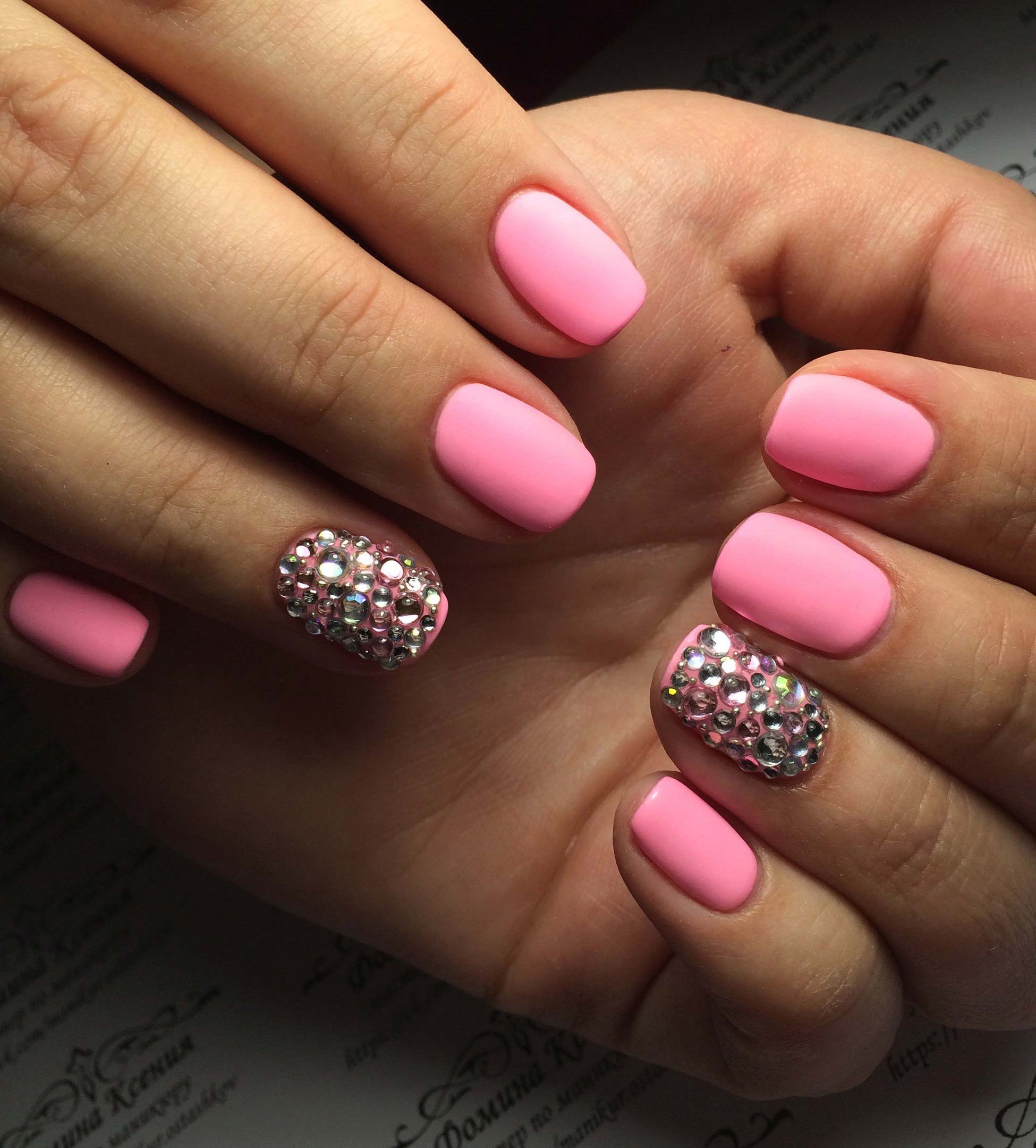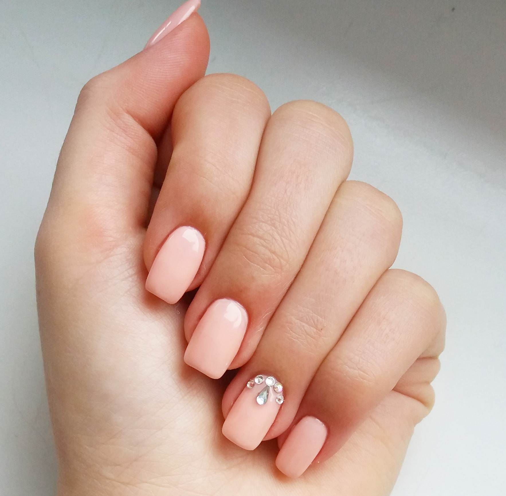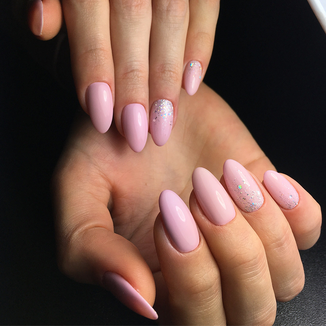 However, at present, girls increasingly prefer pastel shades of pink. If the monophonic coating does not suit you, then you can easily add several design elements to choose from. It can be neat strasses, sparkles or a design with a slider.