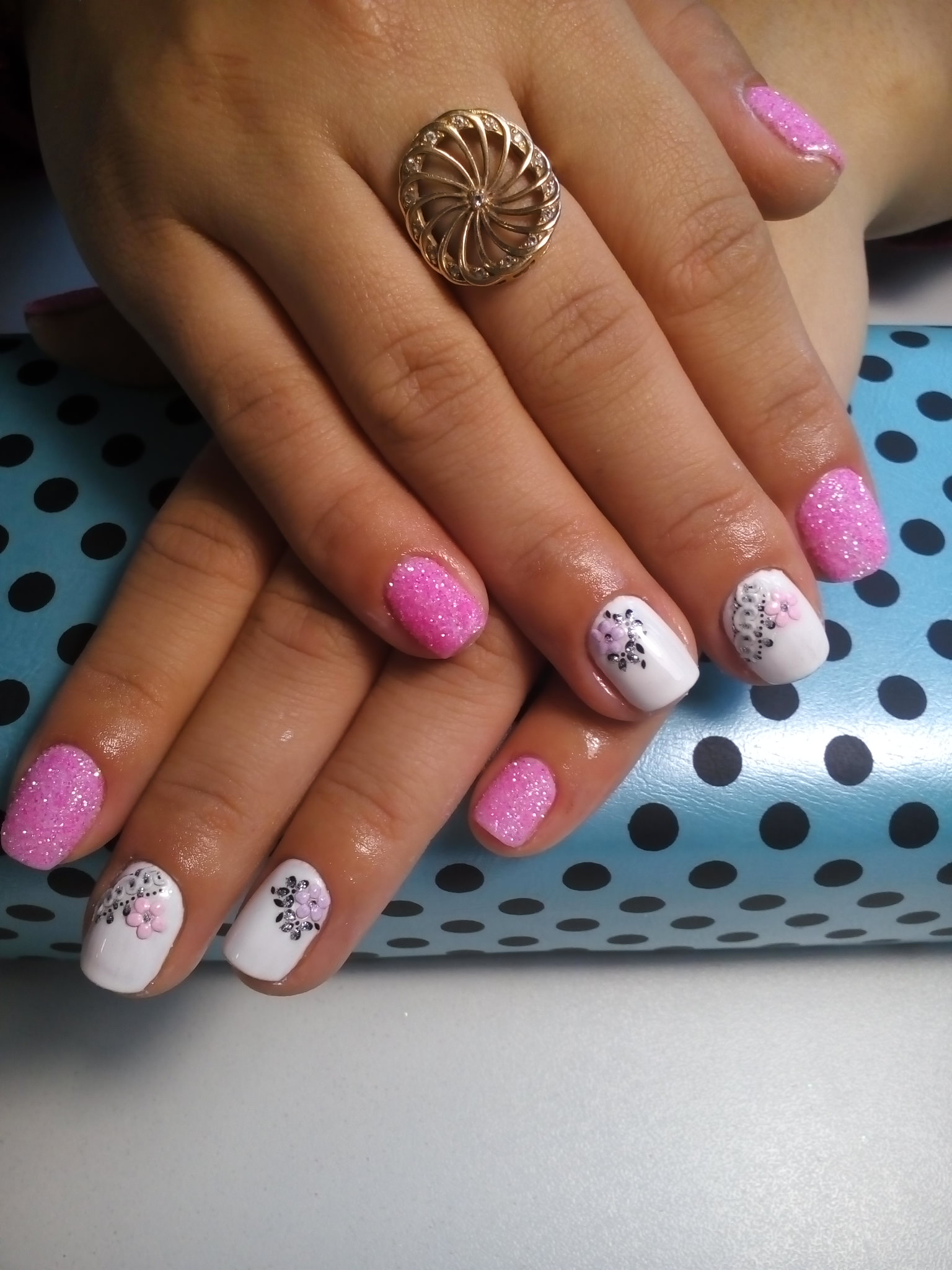 Pink and white manicure