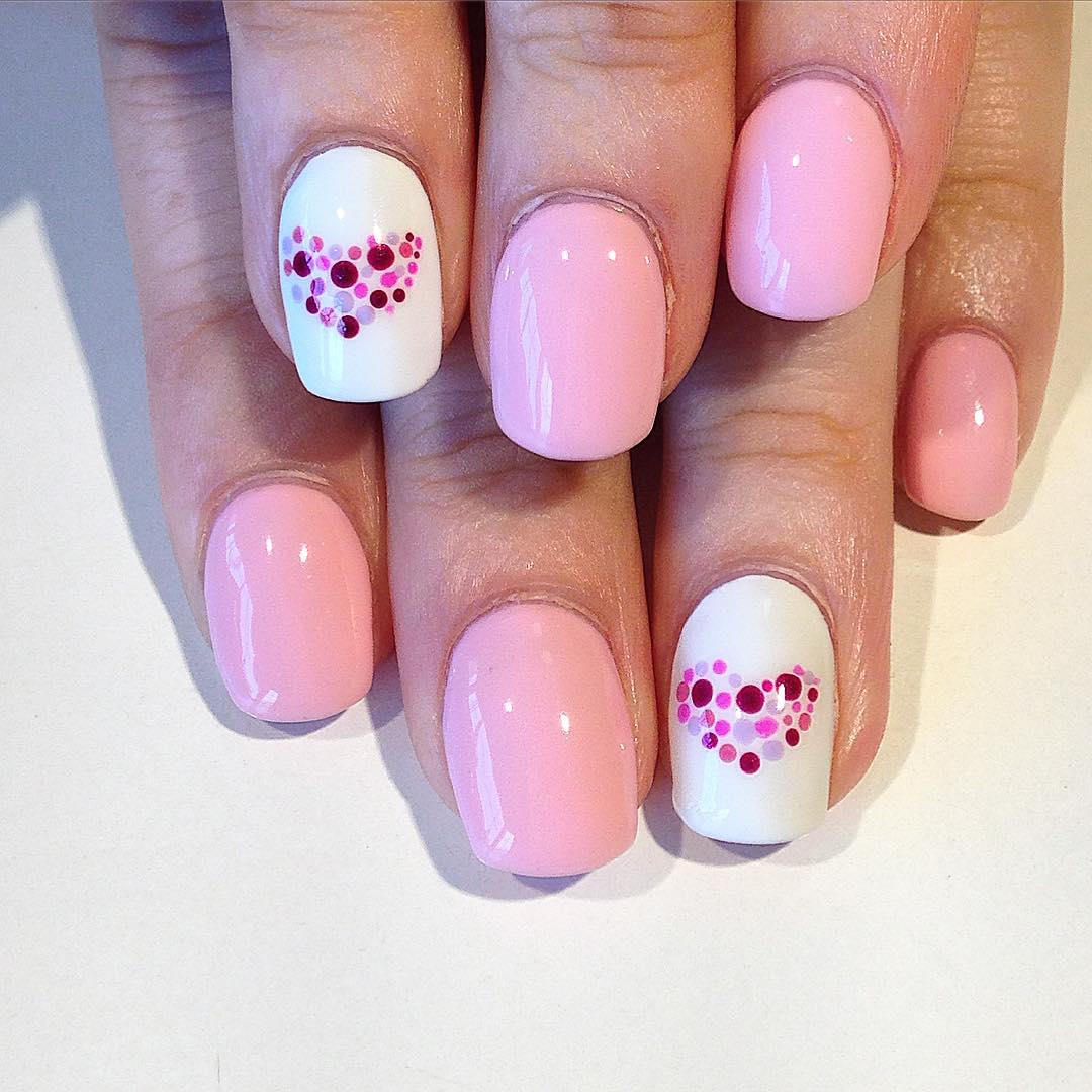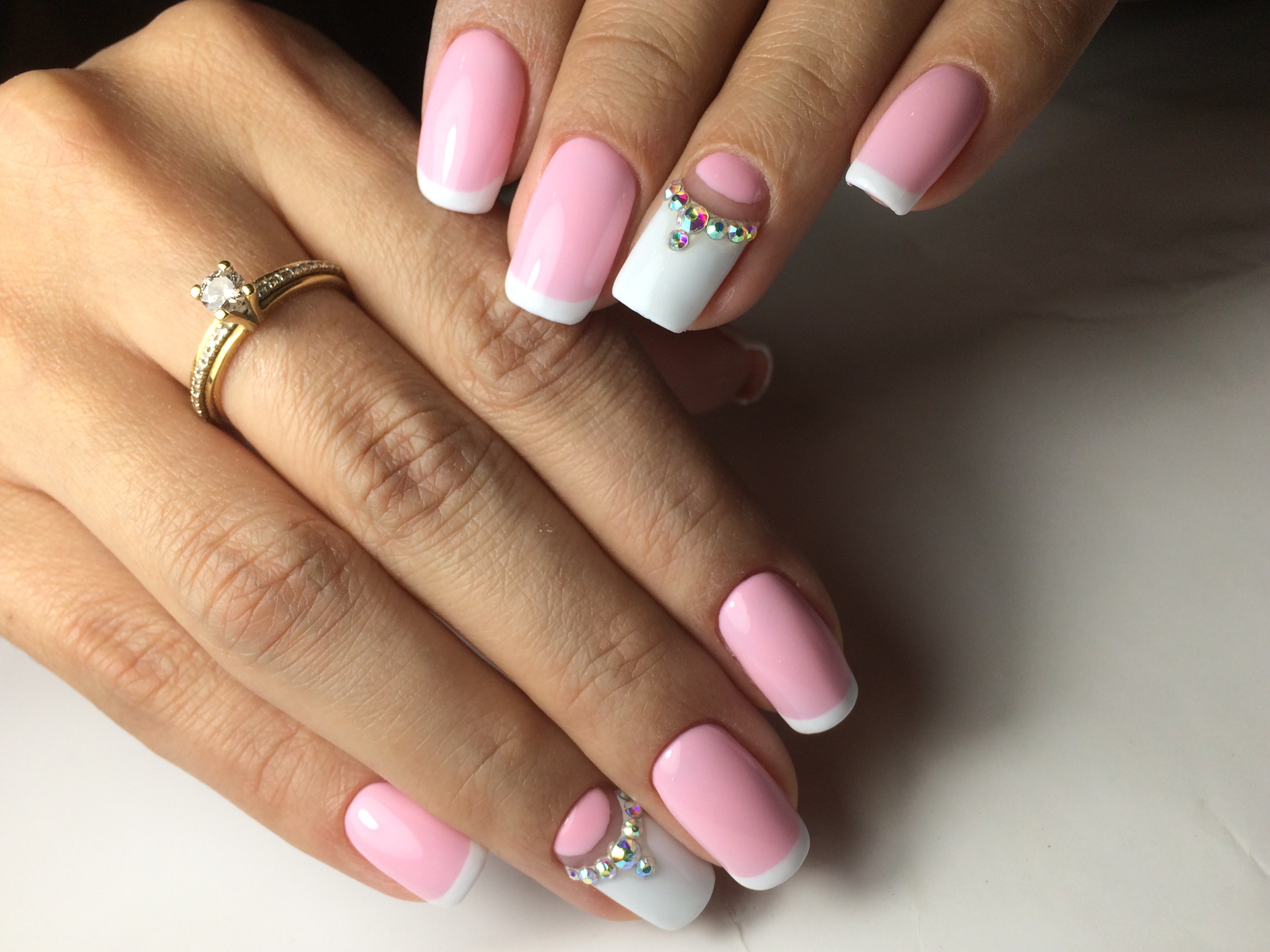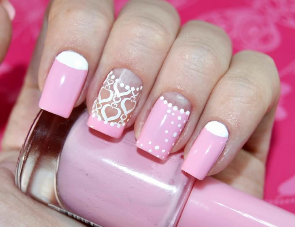 White and pink - the perfect combination in manicure for a wedding or a romantic evening.