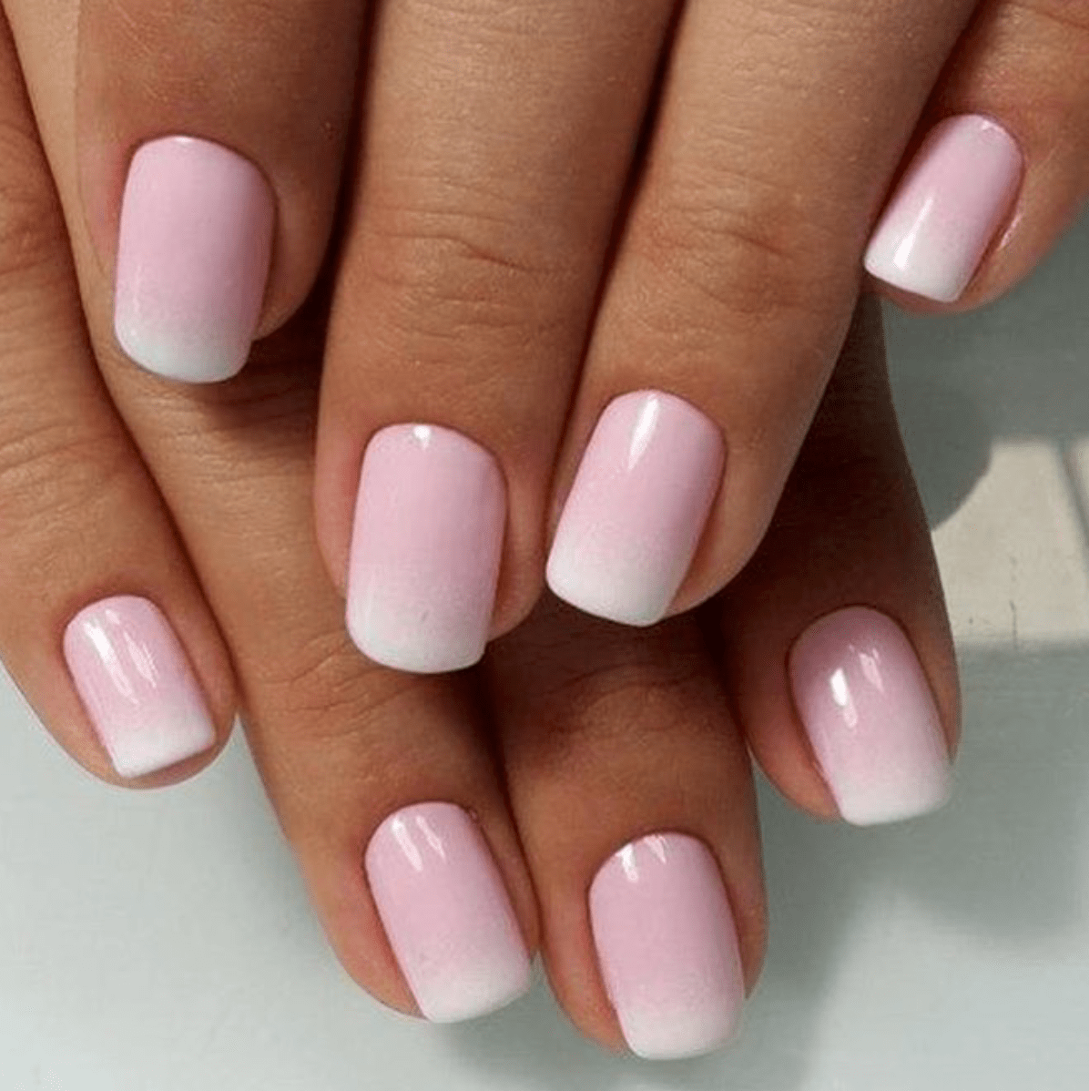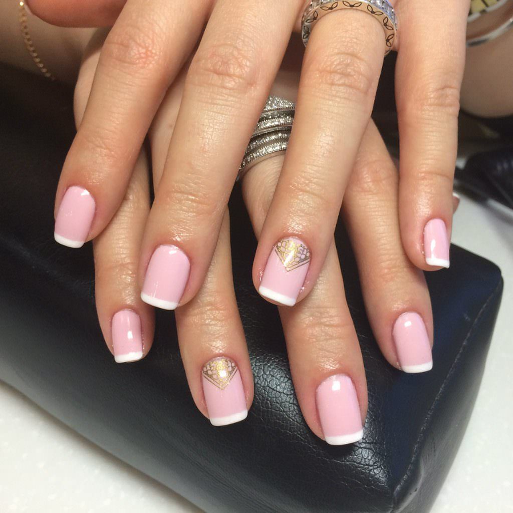 The classic French manicure is made in pink and white.