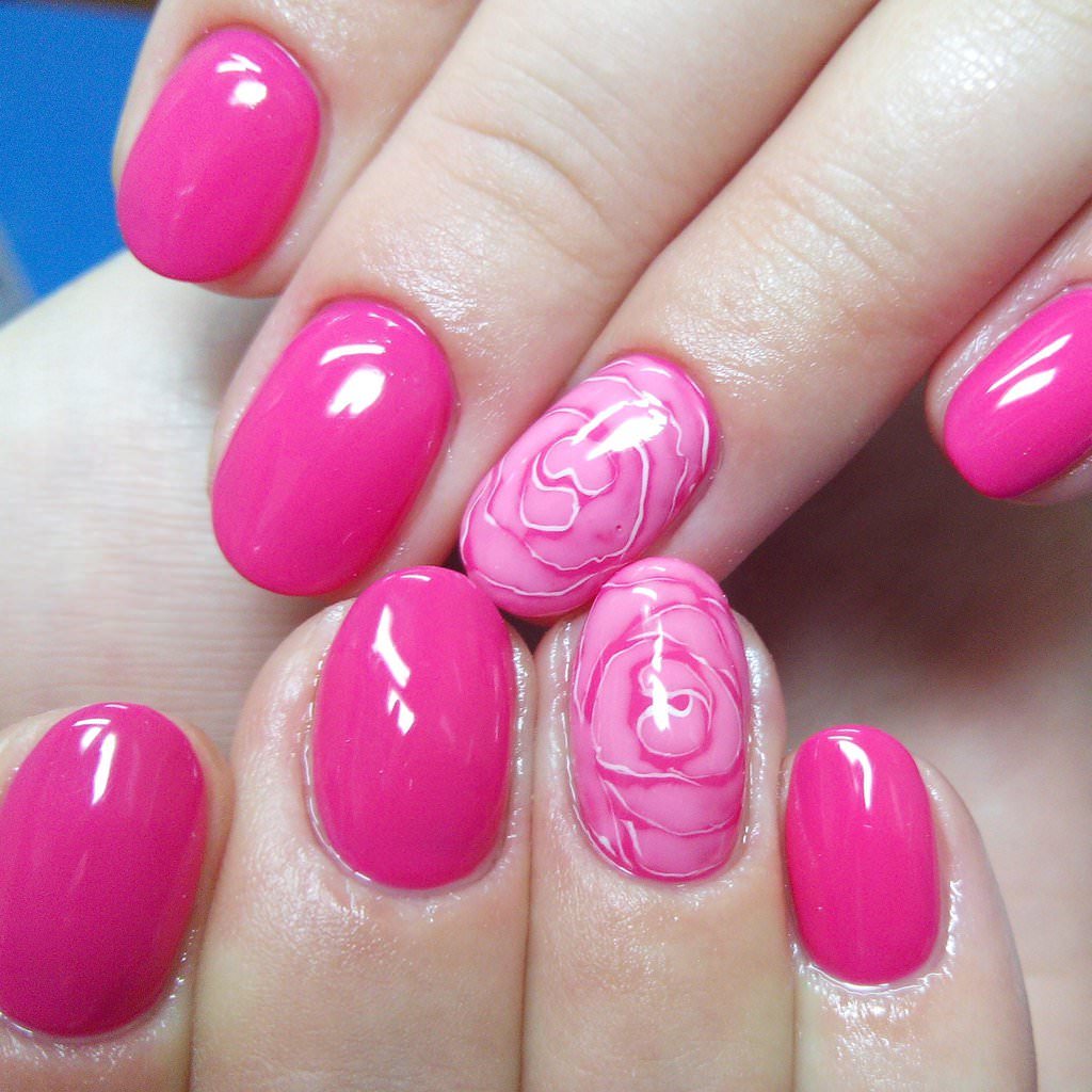 Hot pink in itself is a self-sufficient color and excessive "bells and whistles" will only harm your manicure, give it vulgarity.
