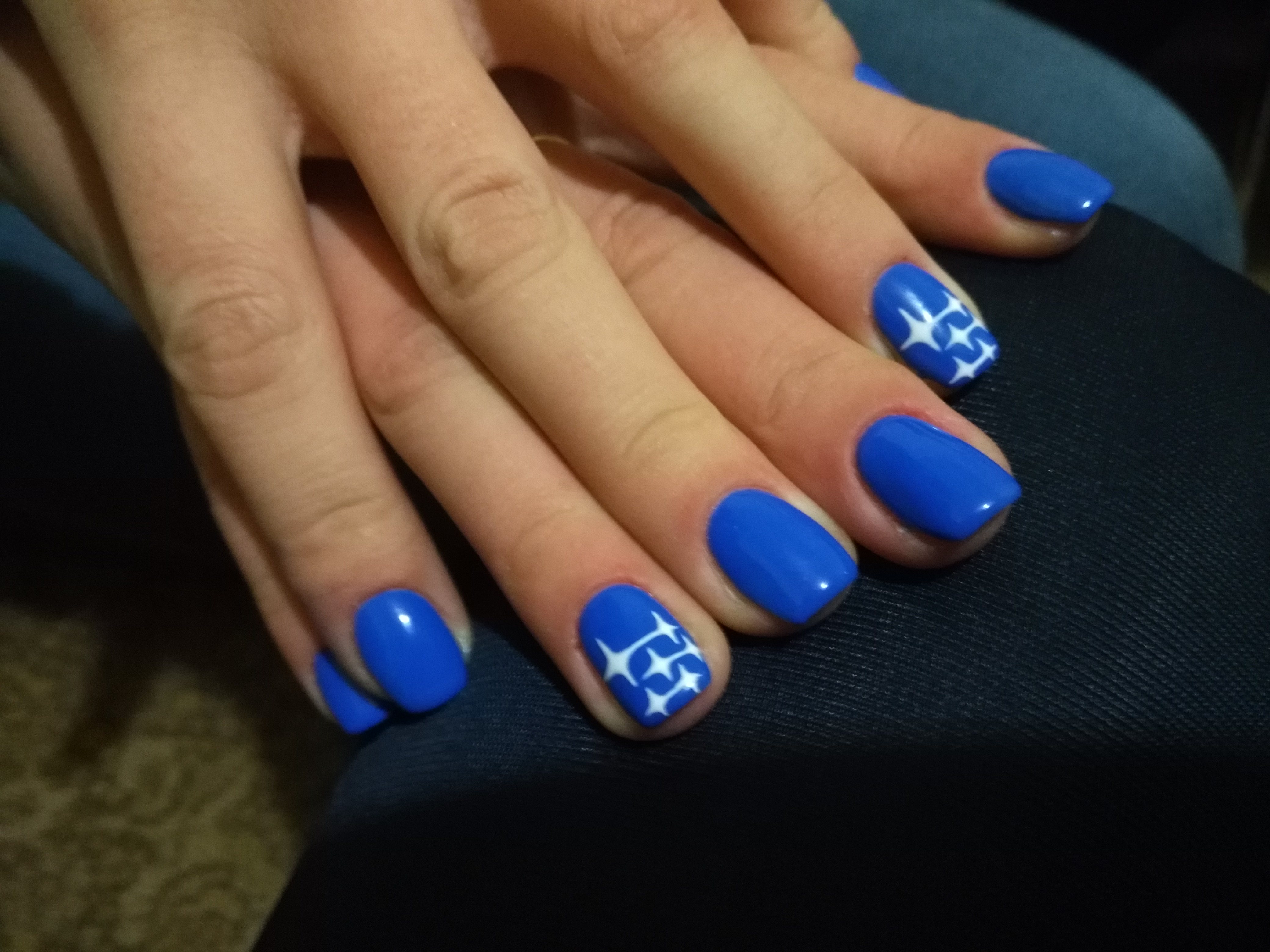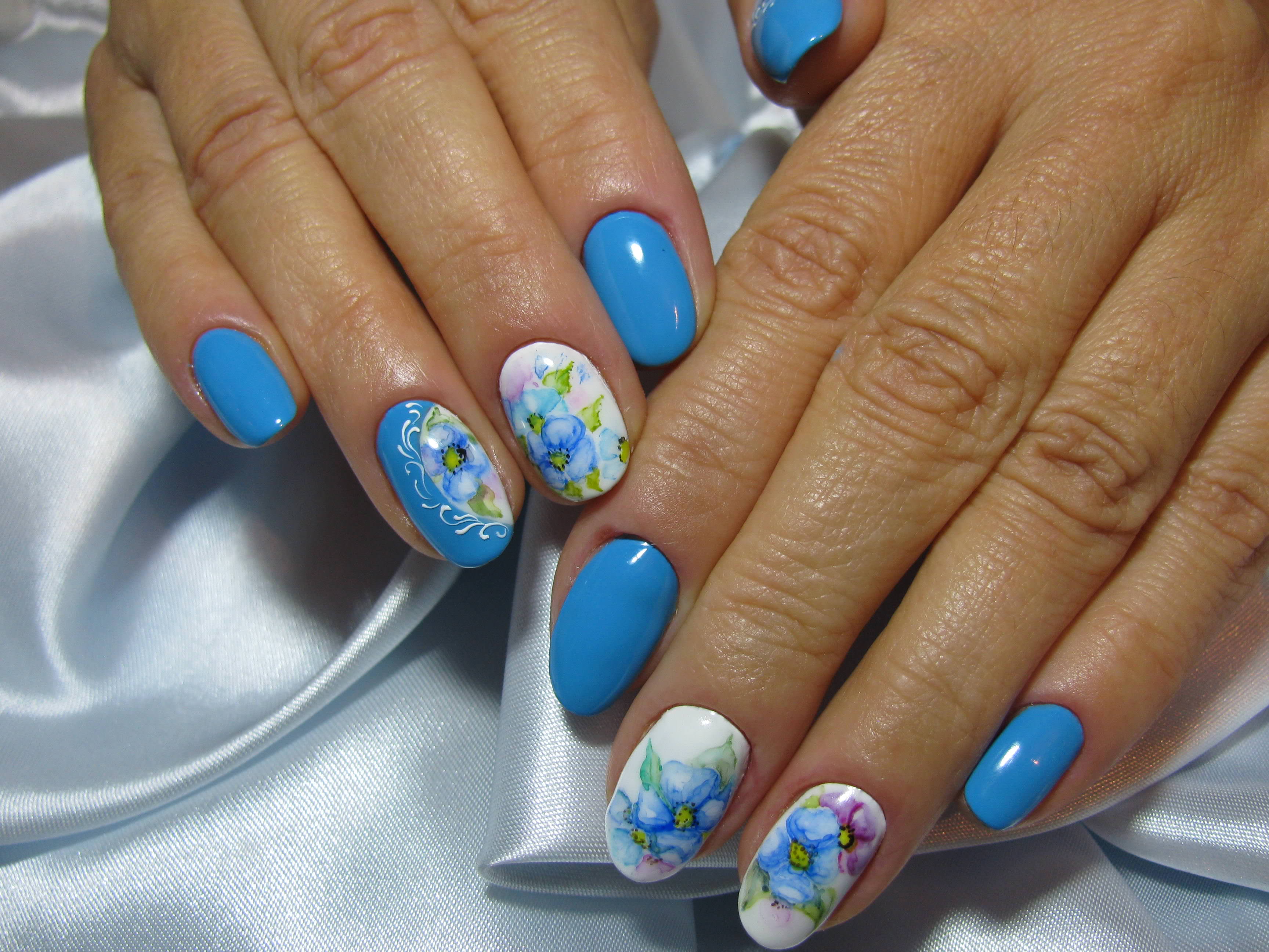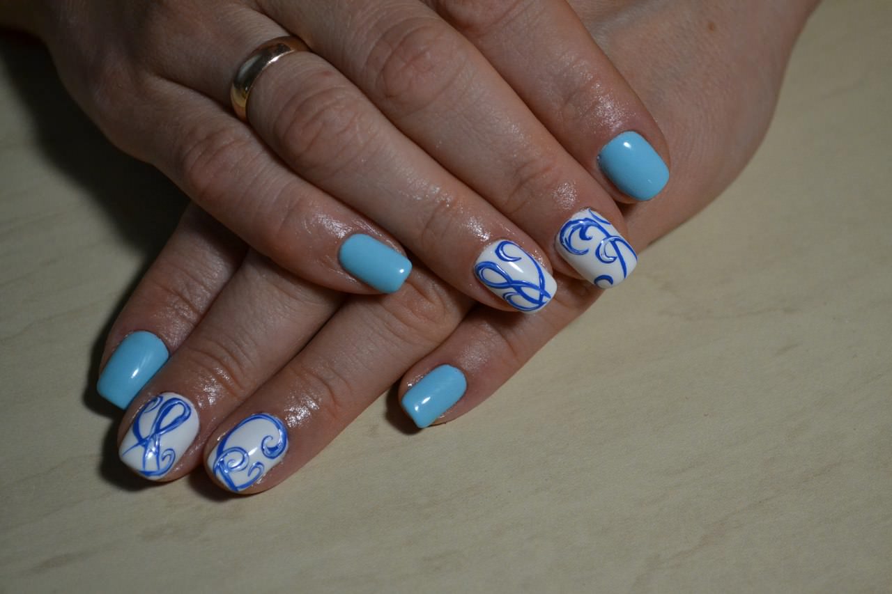 Regarding the length and shape of the nails, there are also absolutely no restrictions. You can choose such a design in blue that short nails will seem visually much longer.