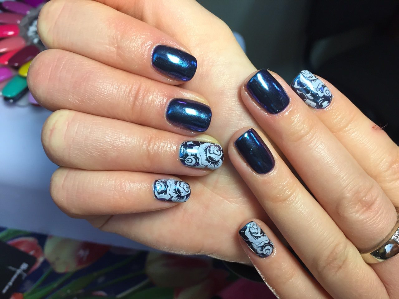 Blue-blue tint is a certain line between cornflower blue and blue. This color is very saturated and at the same time calm. A manicure in blue and blue tones looks very fresh and bright.