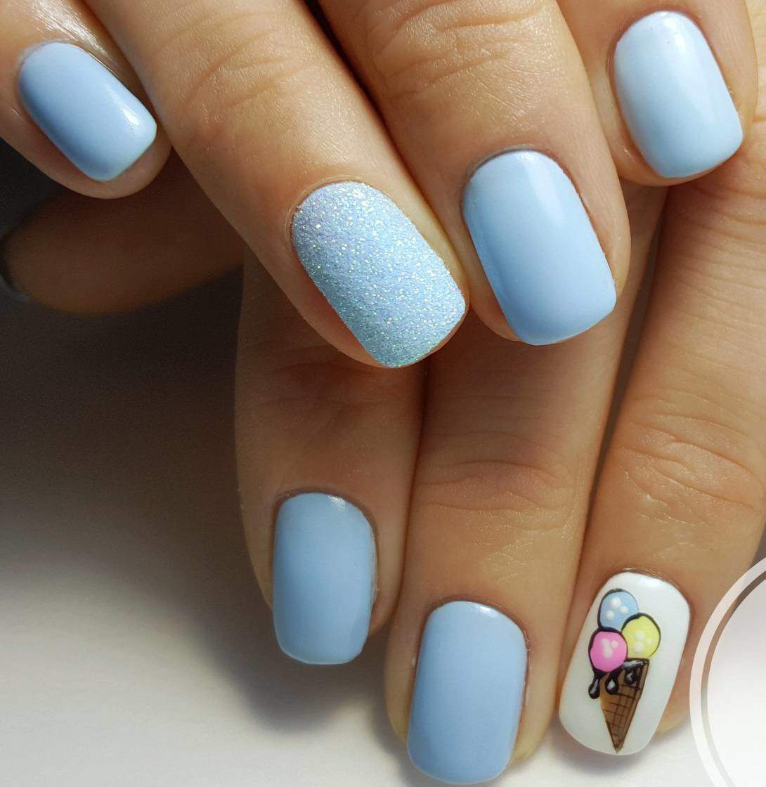 Blue manicure always implies something so gentle and light, so it fits perfectly with summer and spring onions, refreshing and complementing them.