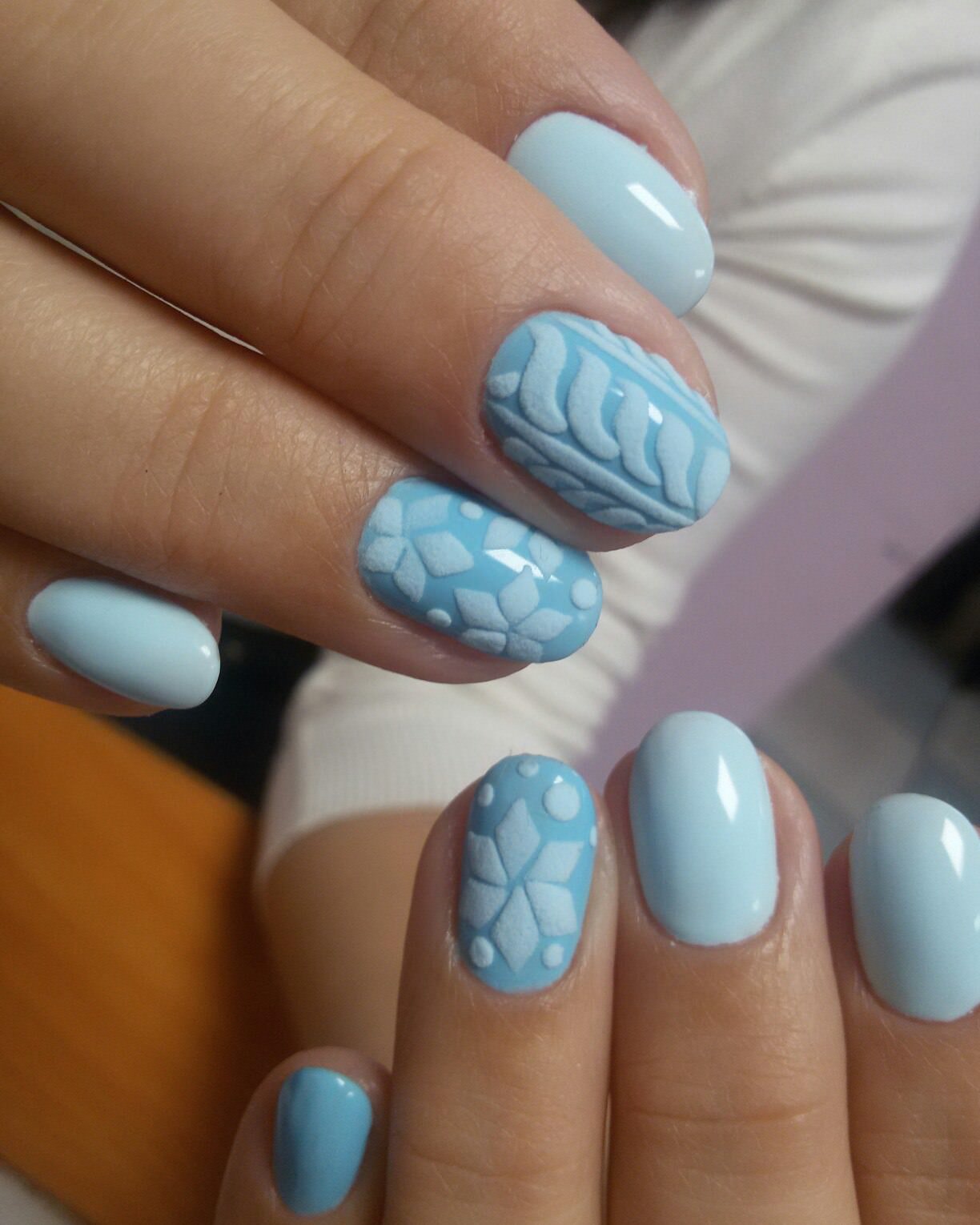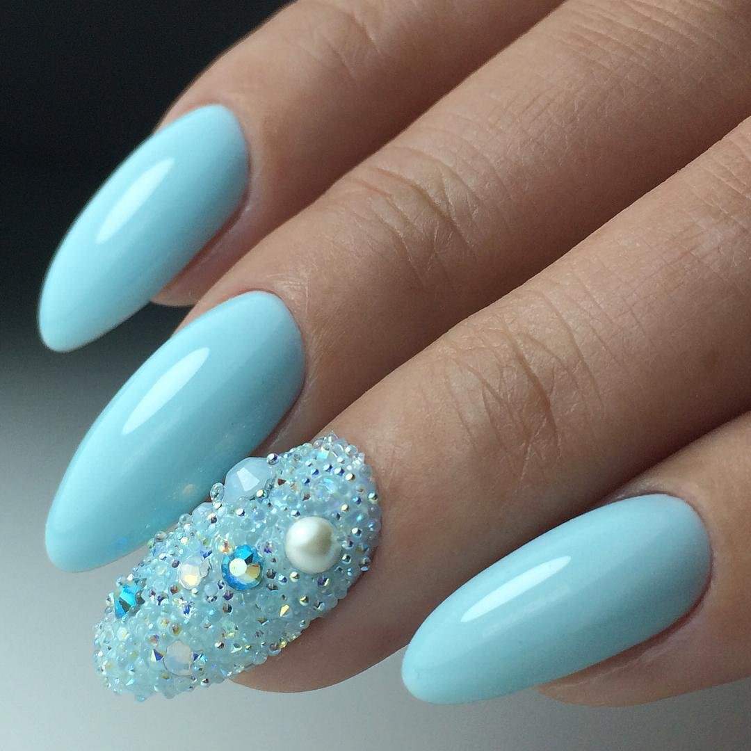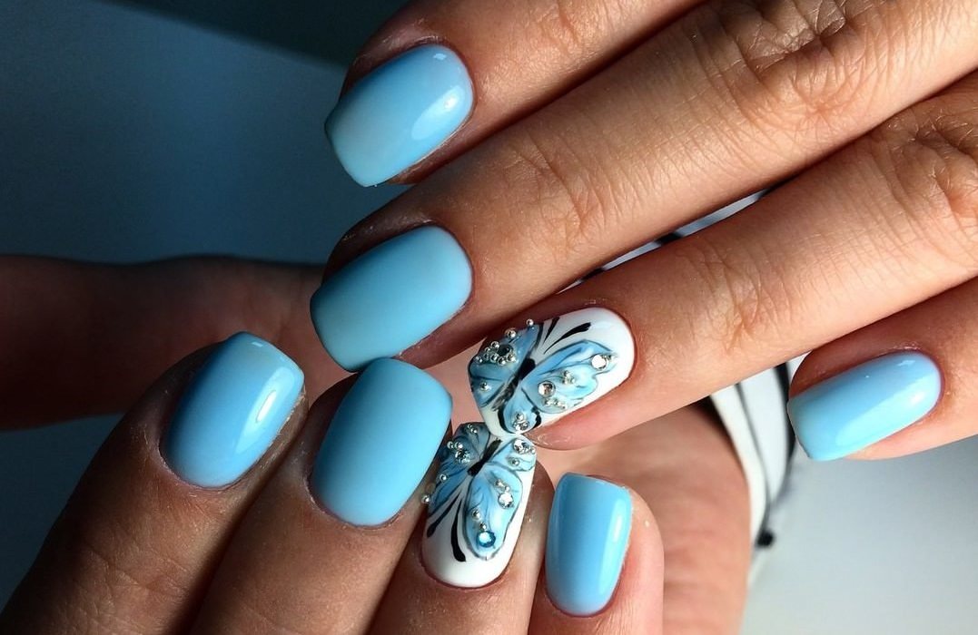 This shade of blue manicure is most often found in spring and summer. This shade symbolizes the very tenderness of the sky. And looking at such a manicure, I want to drown in it.