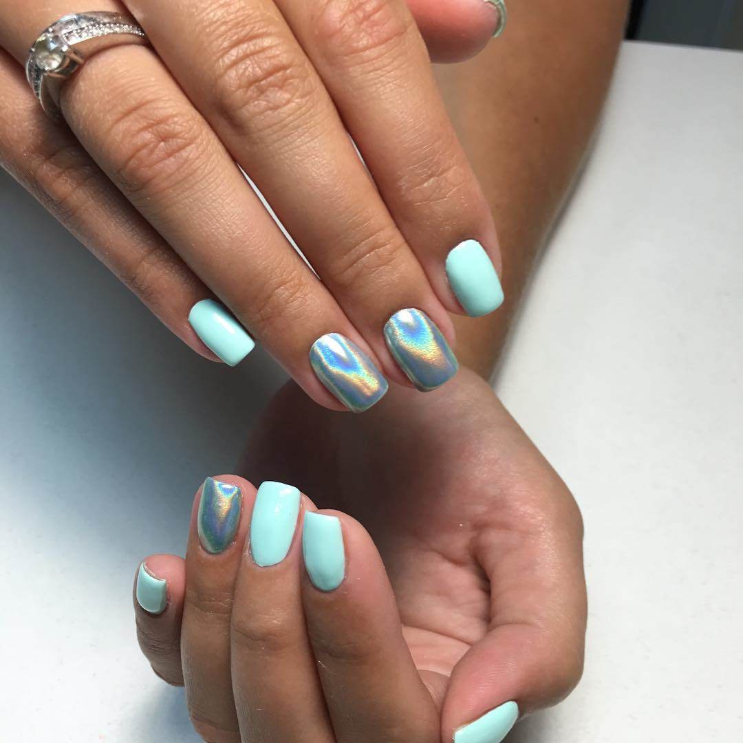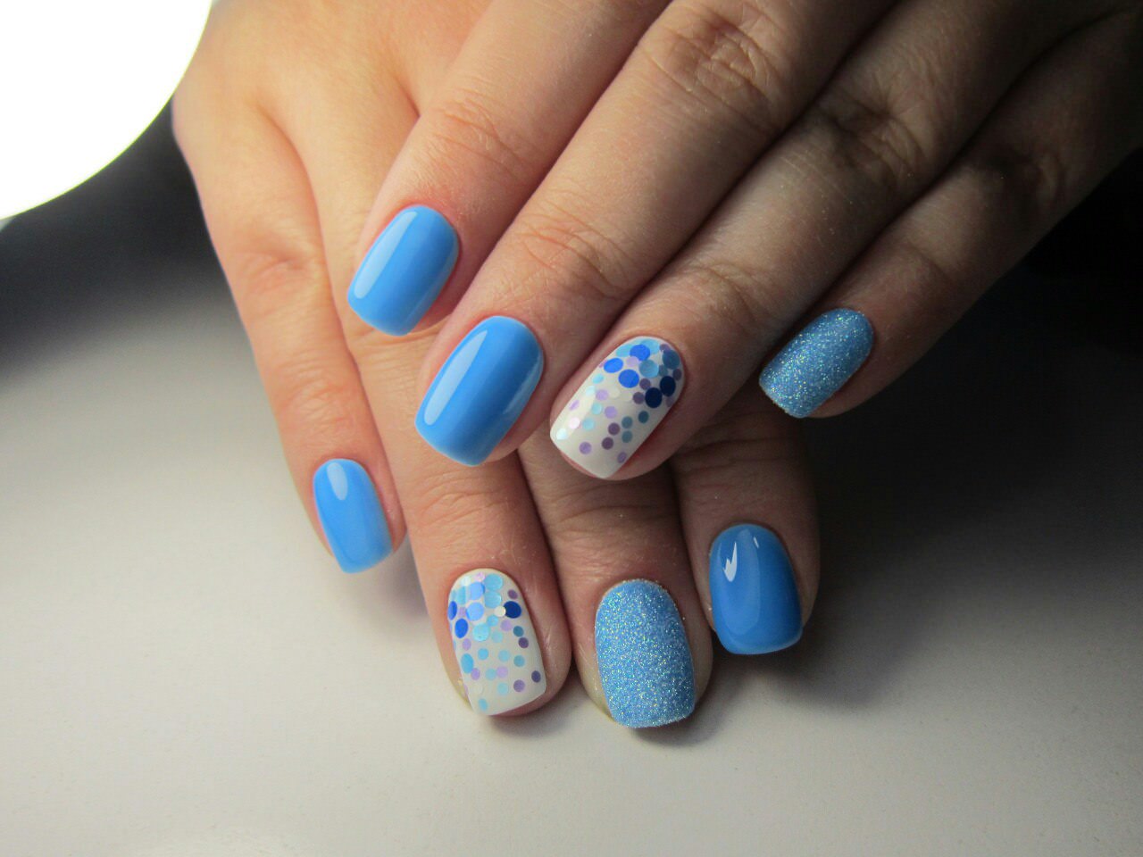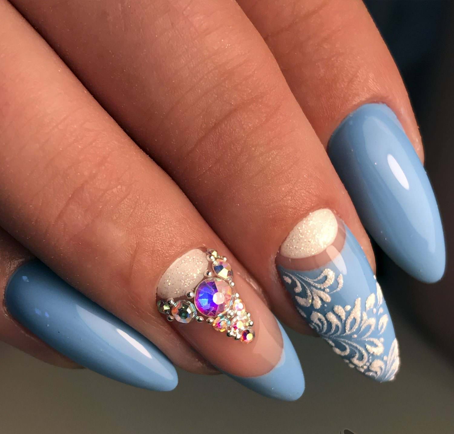 This shade of blue manicure is most often found in spring and summer. This shade symbolizes the very tenderness of the sky. And looking at such a manicure, I want to drown in it.