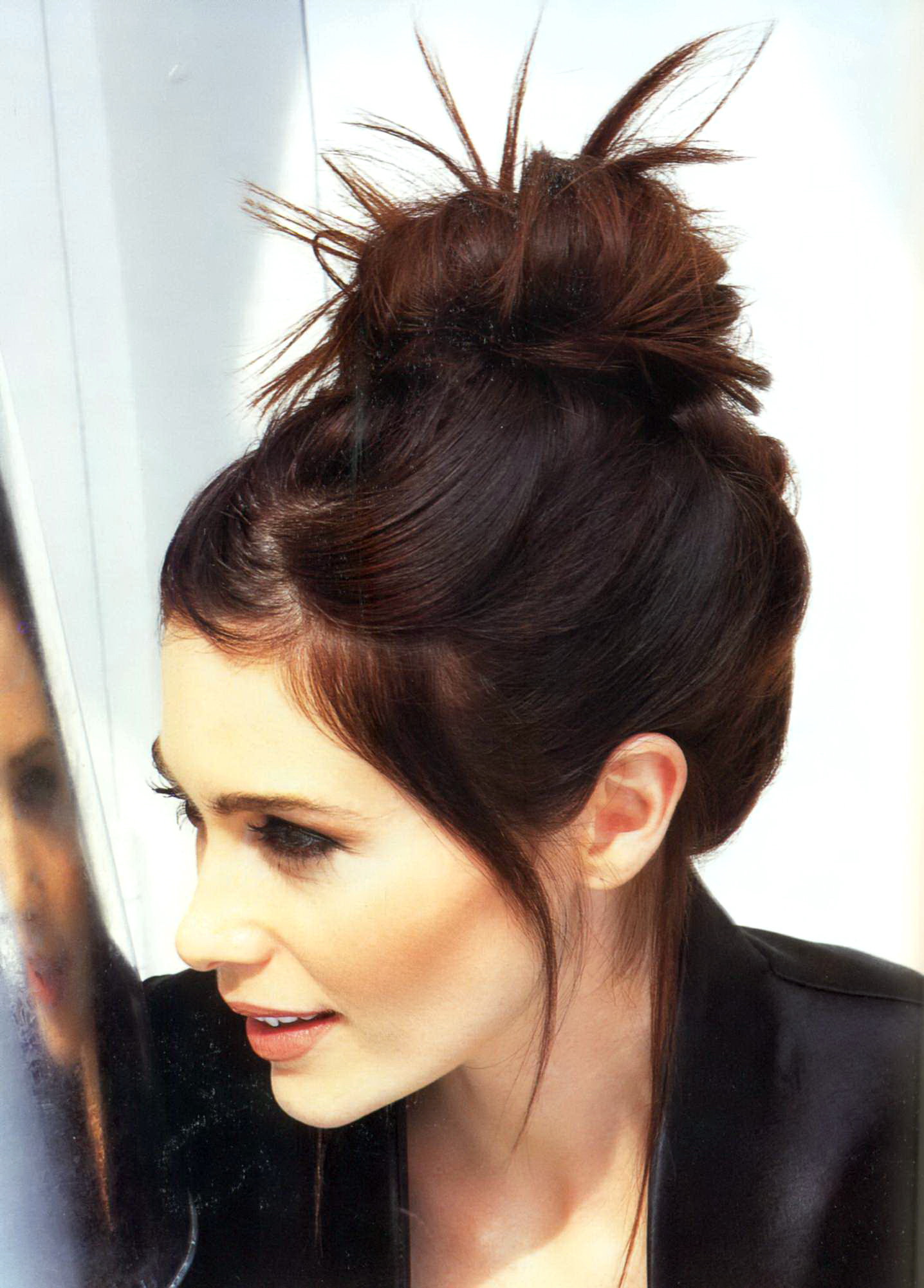 - Medium length hair bun