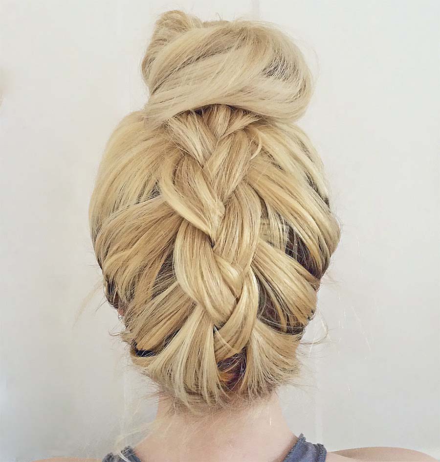 French braid technique with a bun