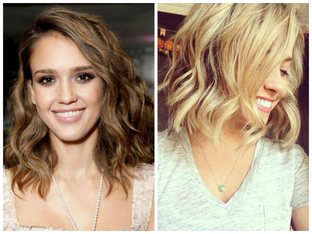 - Light curls and voluminous curls on medium length hair