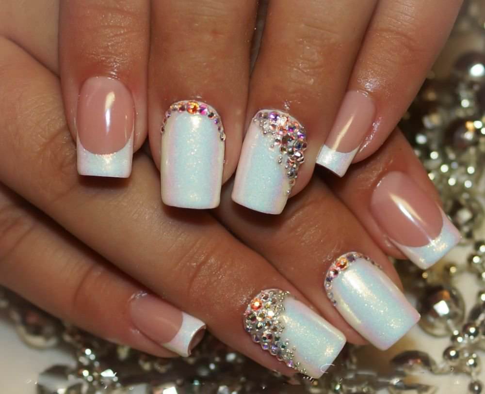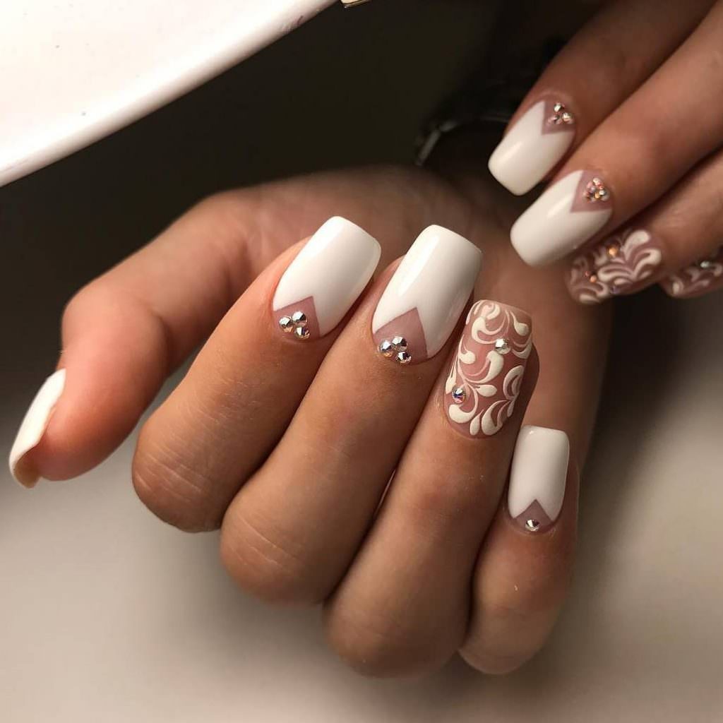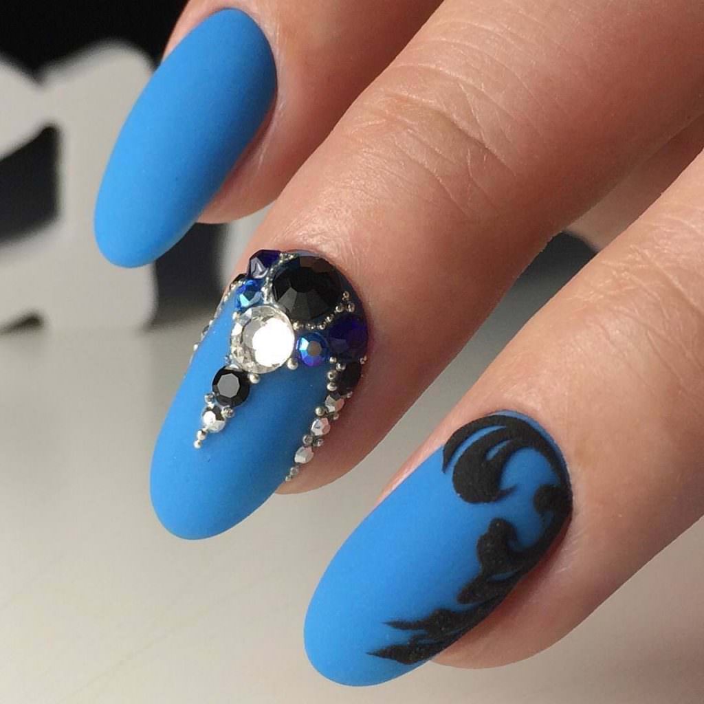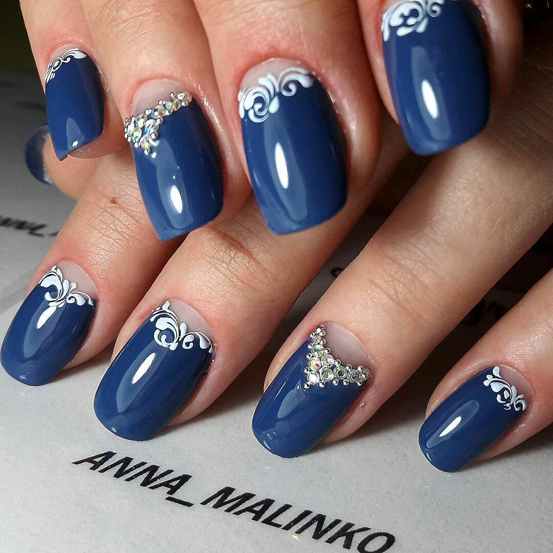 But on medium nails, even a rich scattering of rhinestones looks really magical and provocatively. And the winter design of rhinestones is just sheer magic and a fairy tale!