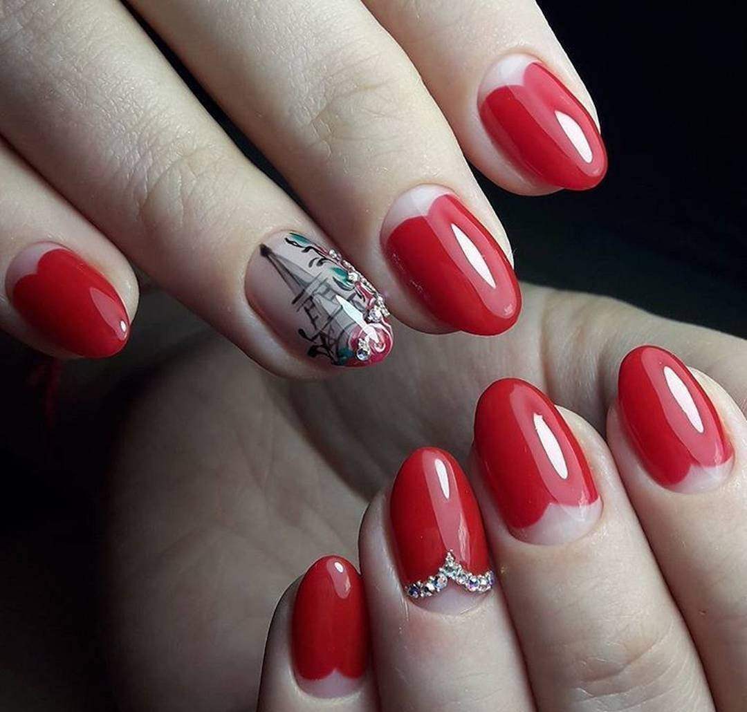 On medium nails, you can try to execute absolutely any design and any idea. Rhinestones, drawings, spangles, geometry, a mirror rubbing and of course a monophonic coating look luxurious on them.