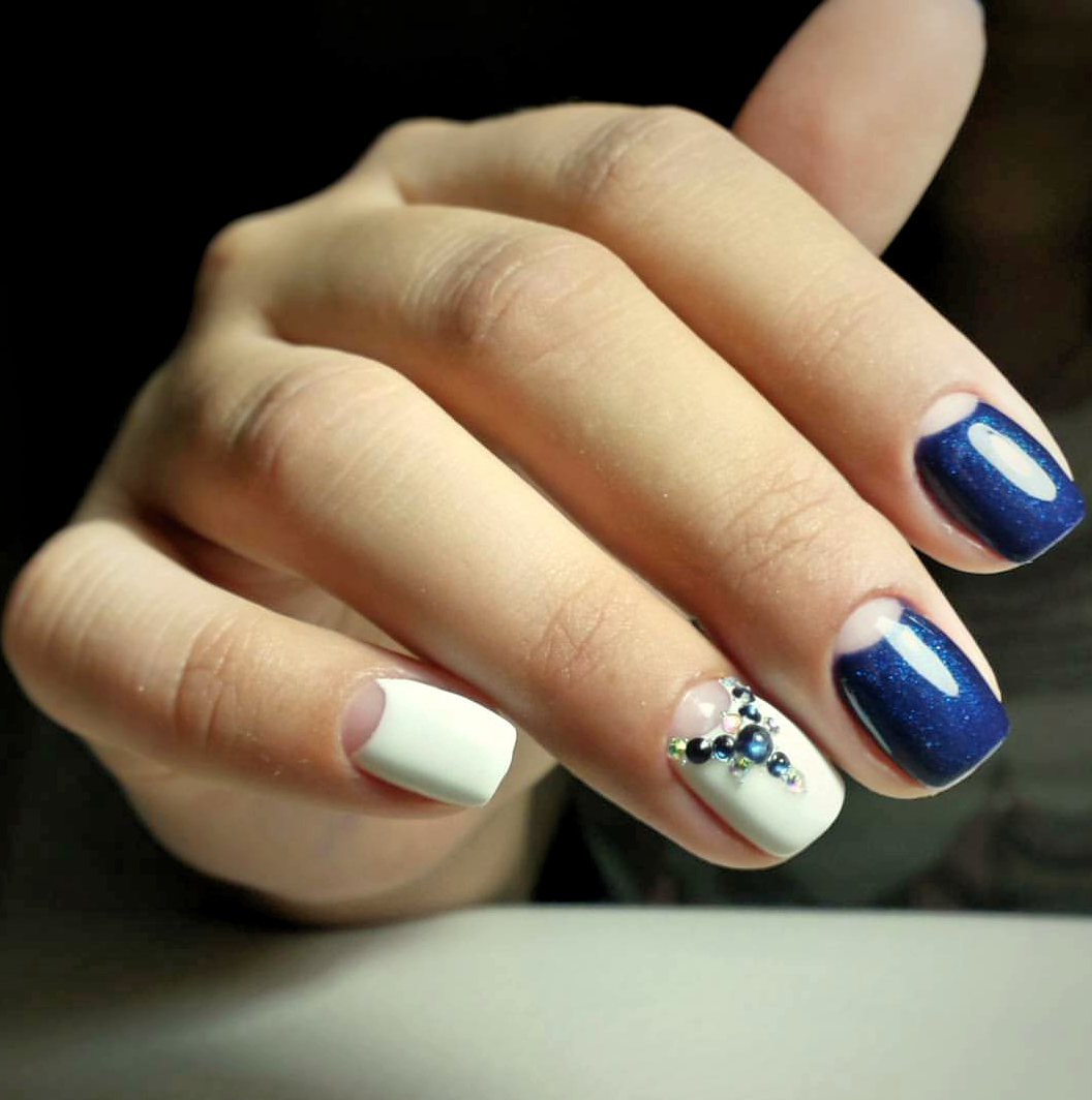 Short nails should not be abundantly decorated with rhinestones, this will make them look completely ridiculous.
