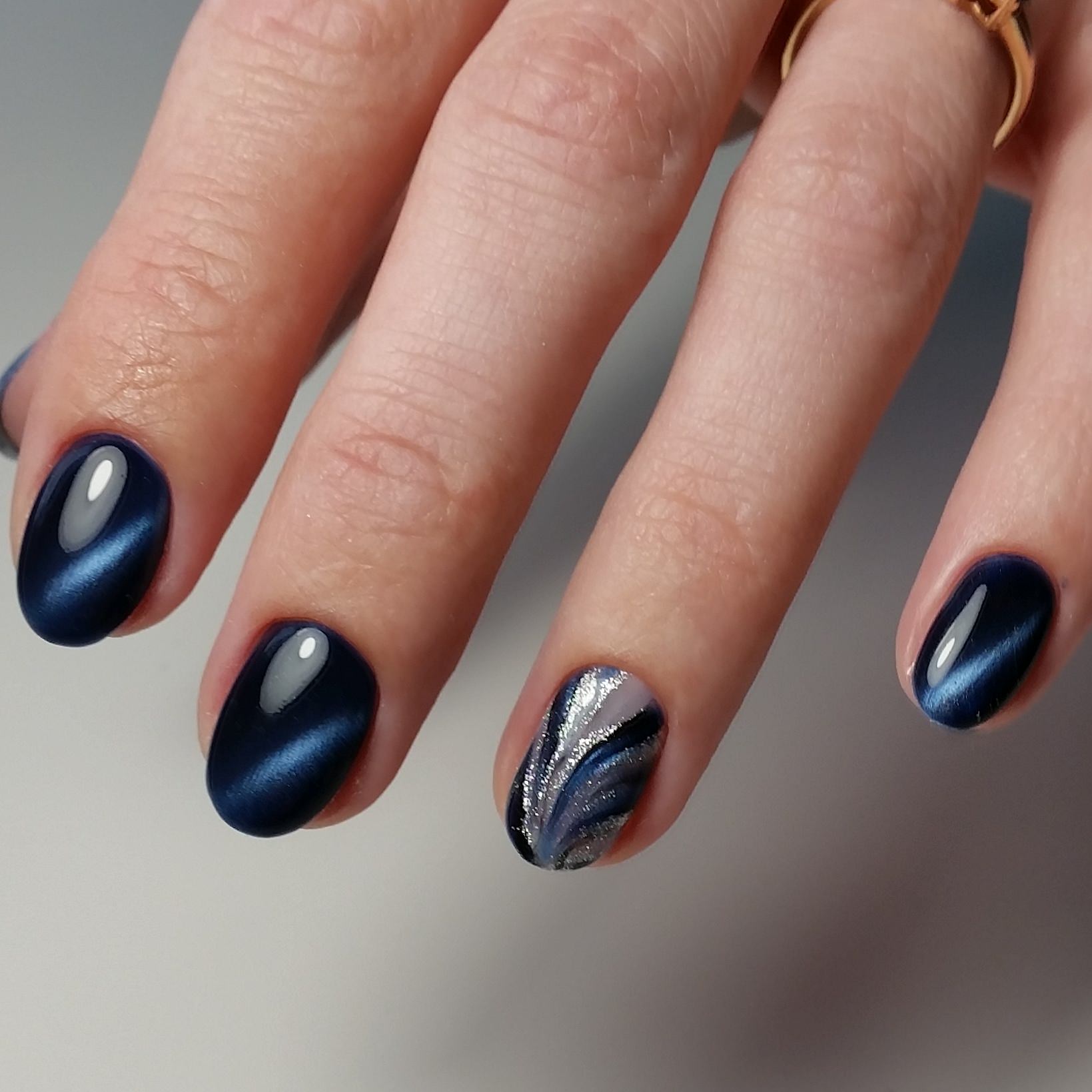 A cat-eye manicure has recently burst into the world of nail art. It is a luxurious iridescent ornament, reminiscent in appearance of a cat's eye (hence the name).