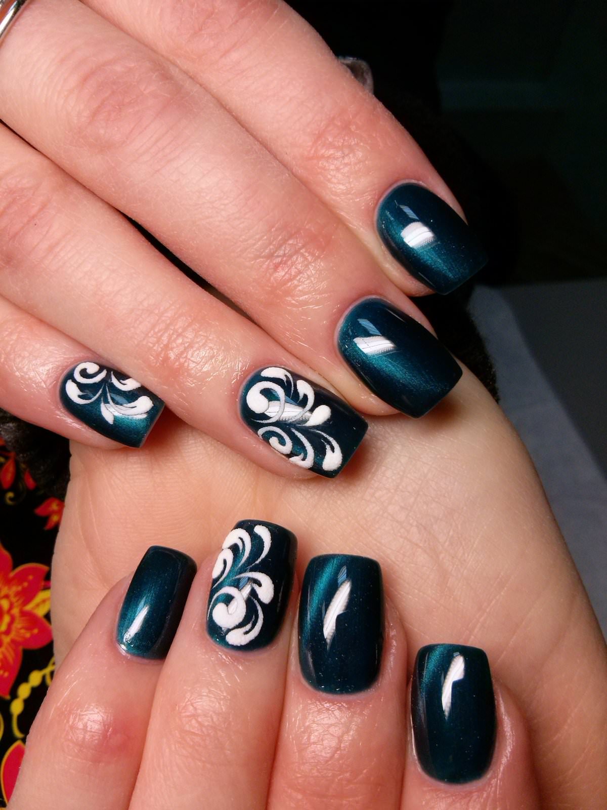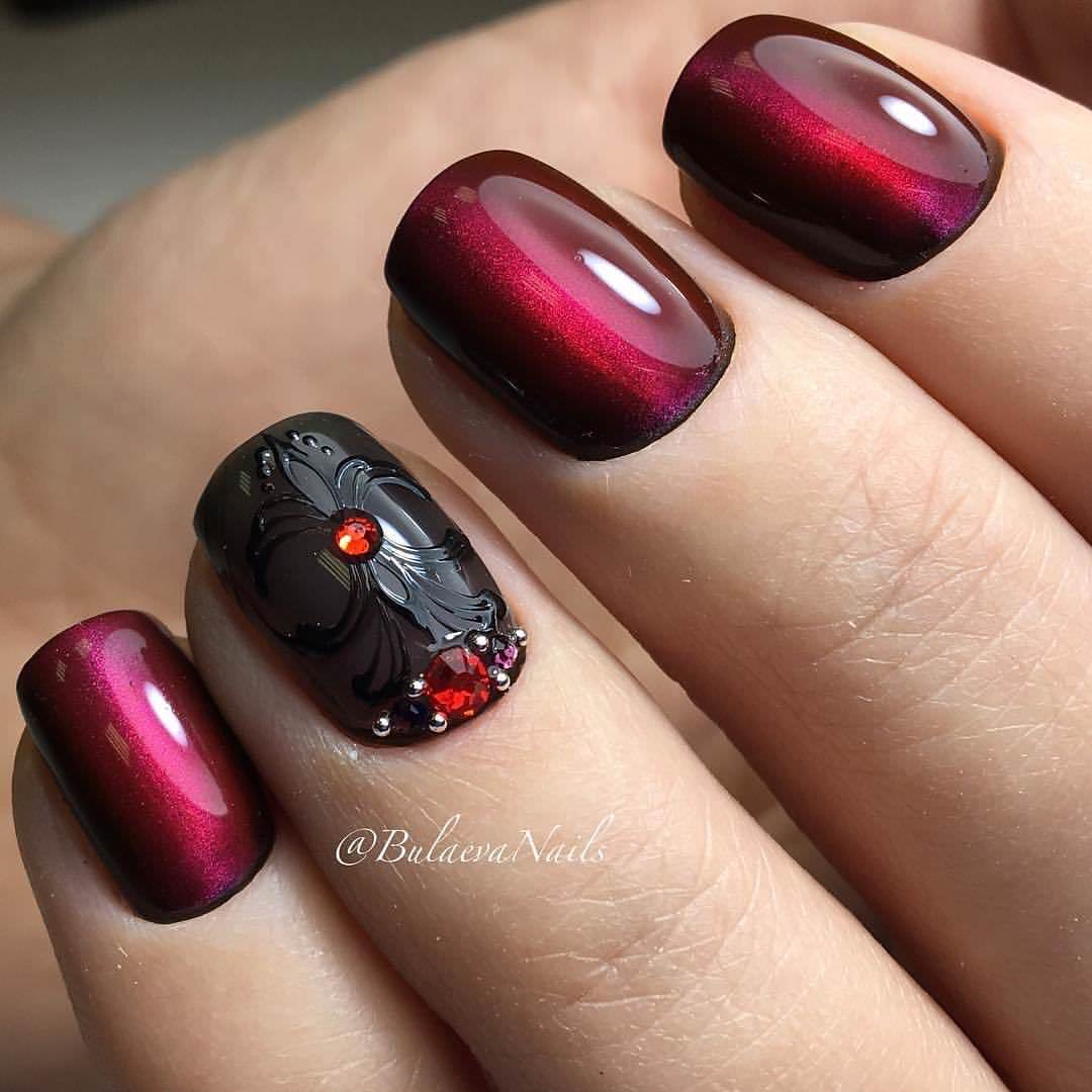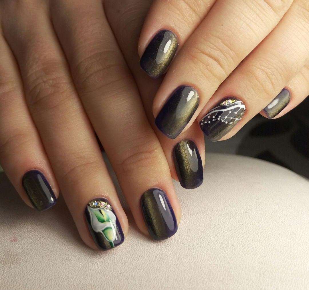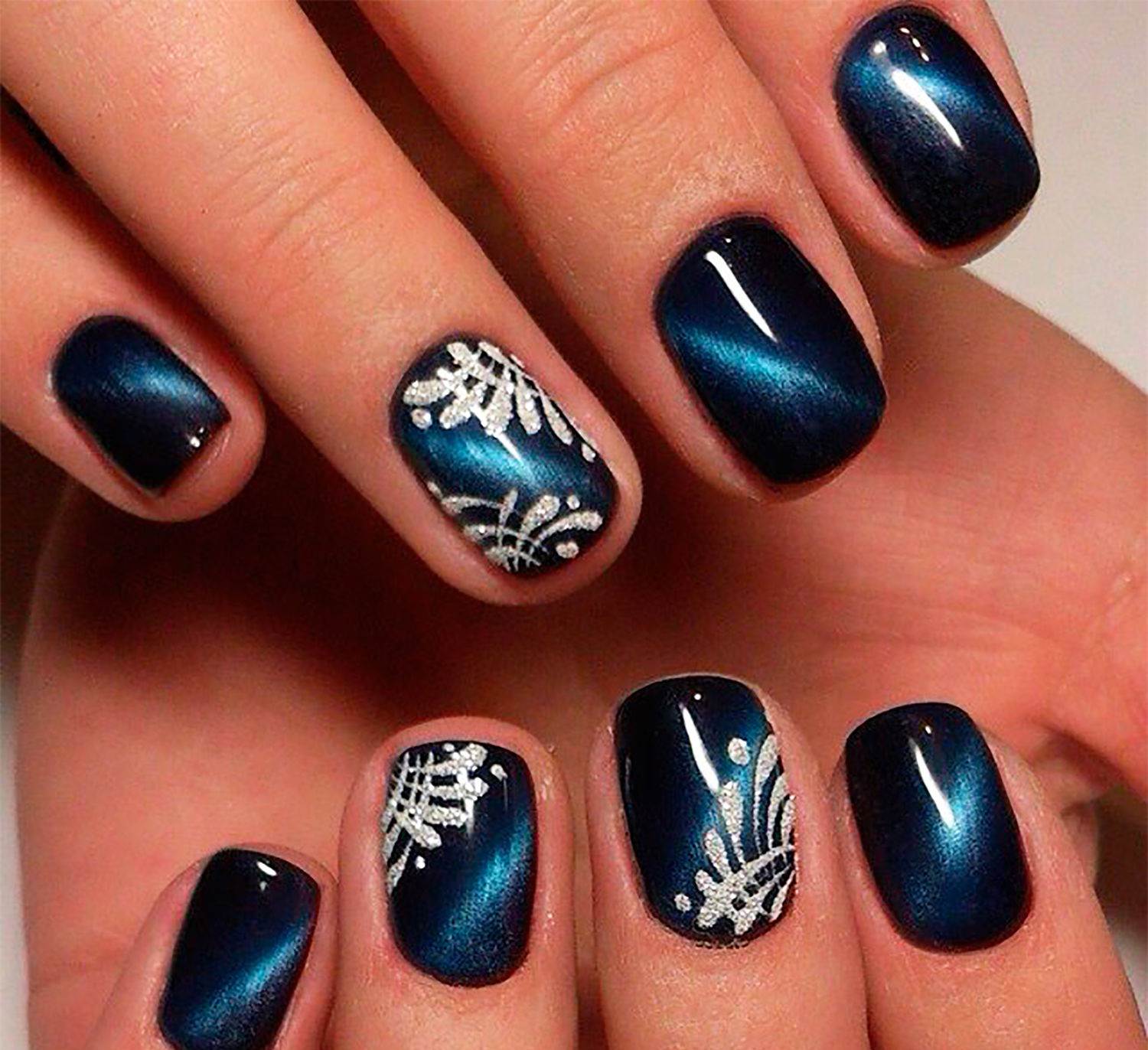 The cat's eye became especially popular precisely in the winter season, since having a dark tone in its basis, it blends and harmonizes with the dark and light shades of winter landscapes. Such a manicure looks especially luxurious on New Year's Eve.