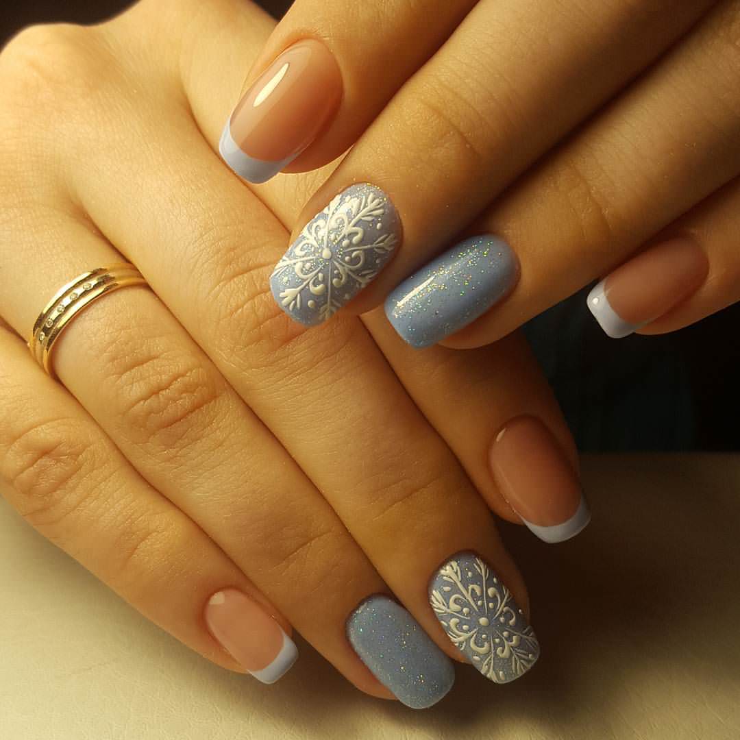 French manicure or French is one of the classic types of nail design. Based on it, you can create truly stunning decor options. Winter performance of a manicure in a French style is characterized by the presence of snow patterns, decorating nails with sparkles or openwork painting.