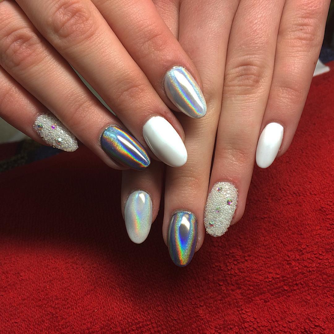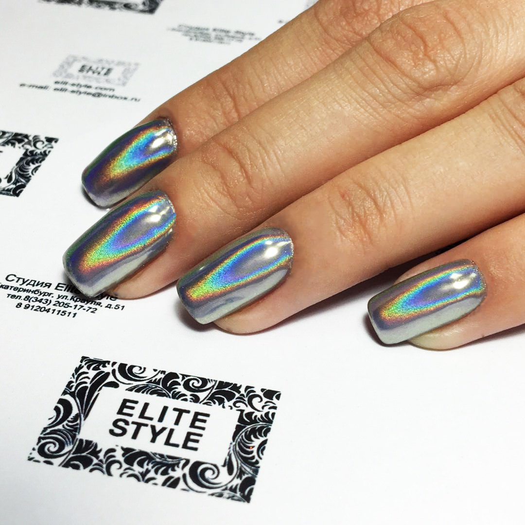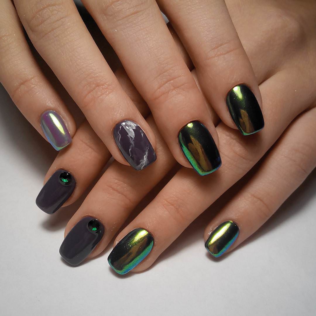 Another popular type of winter design for short nails is the mirror rubbing. Despite the fact that the peak of her popularity has already passed, she is still able to surprise and delight many fashionistas with her beauty.