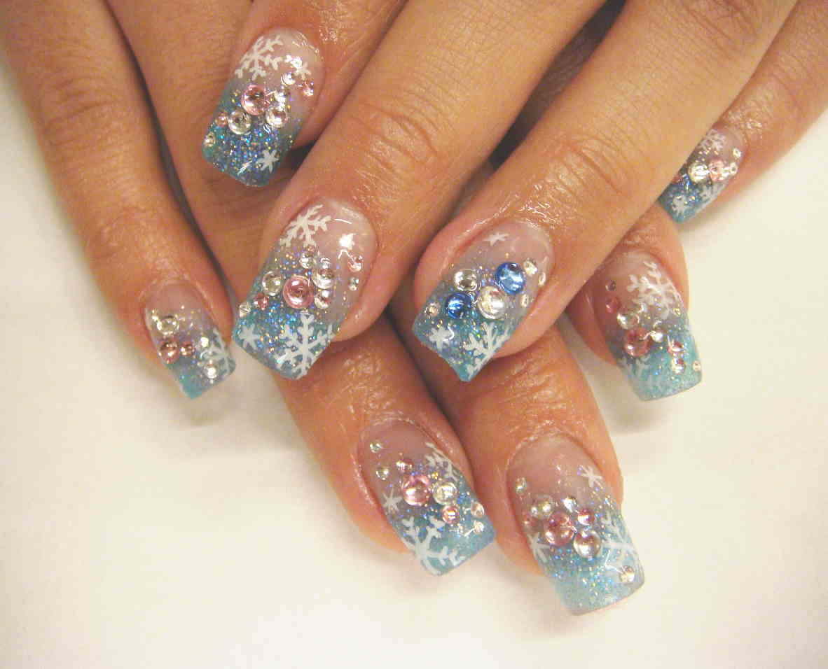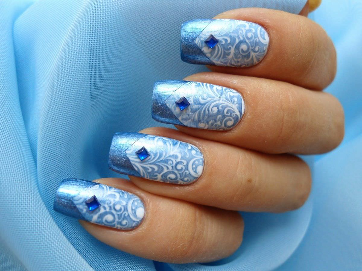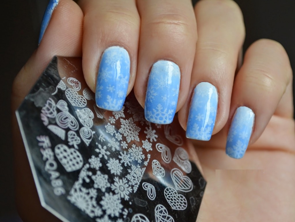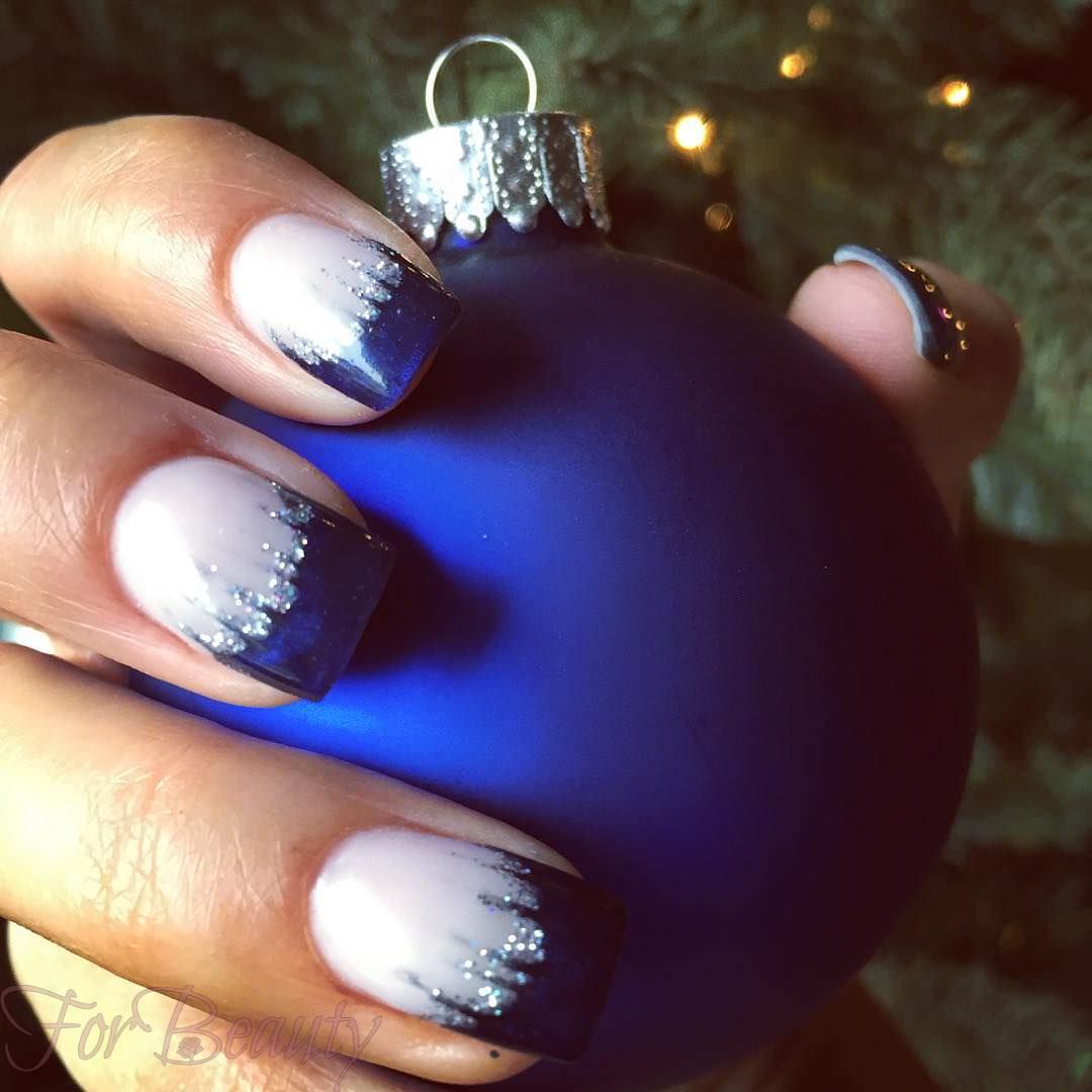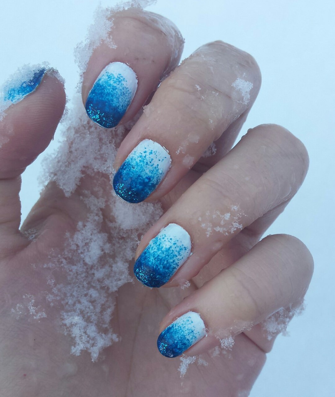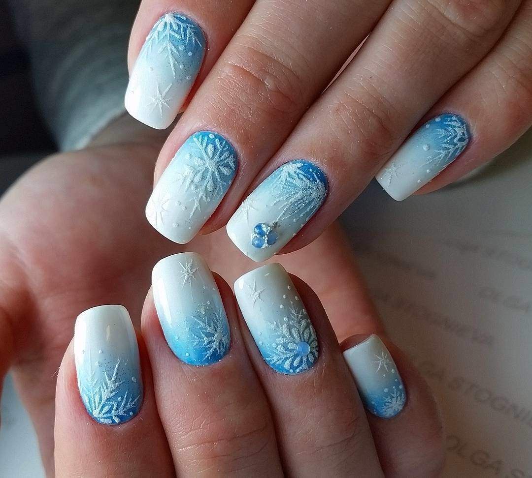 Another variant of winter design for long nails is ombre. It is logical to assume that from the others, the winter version differs in a color palette. In winter, these are all shades of blue combined with white.In addition, luxurious ombre looks in purple and other dark colors.