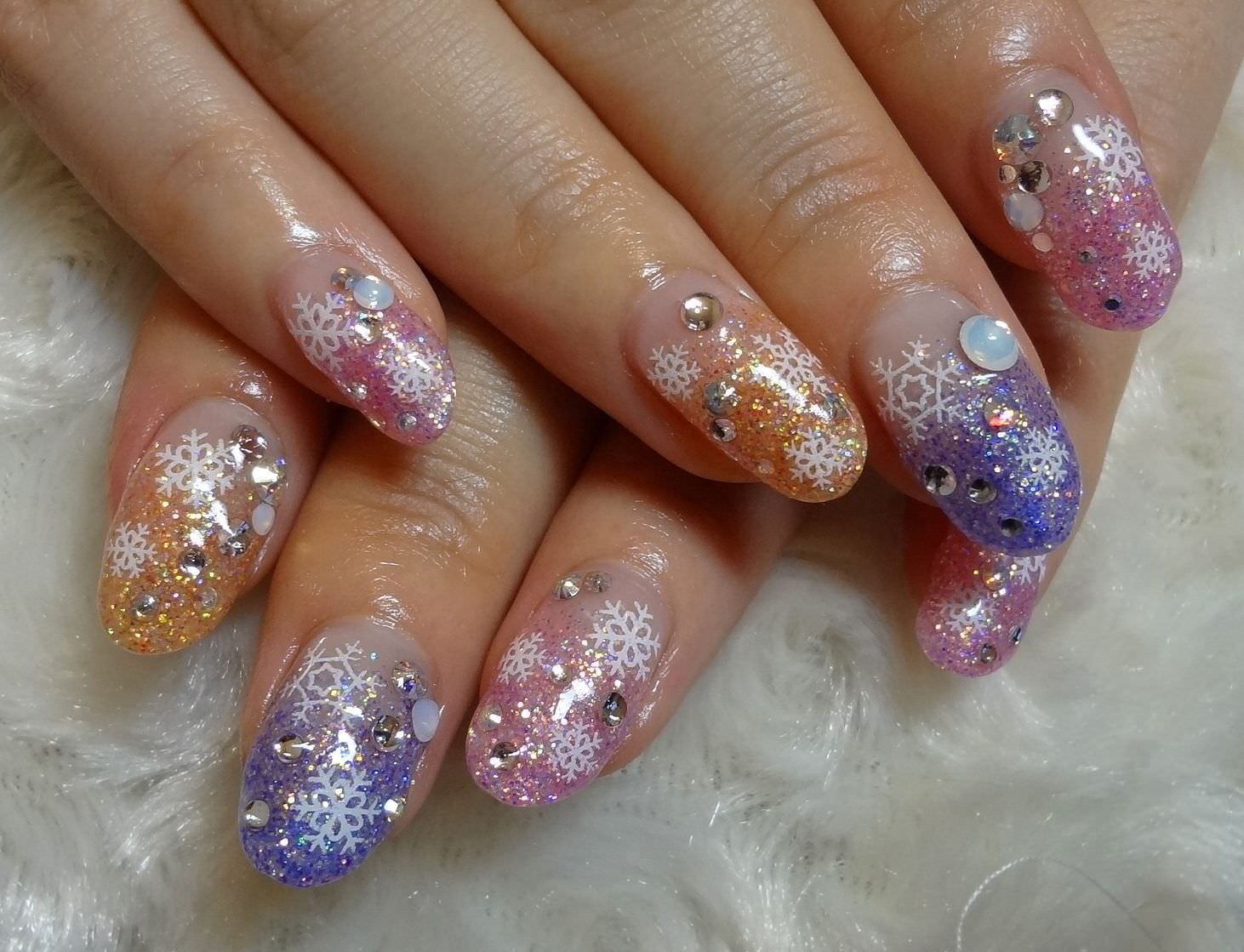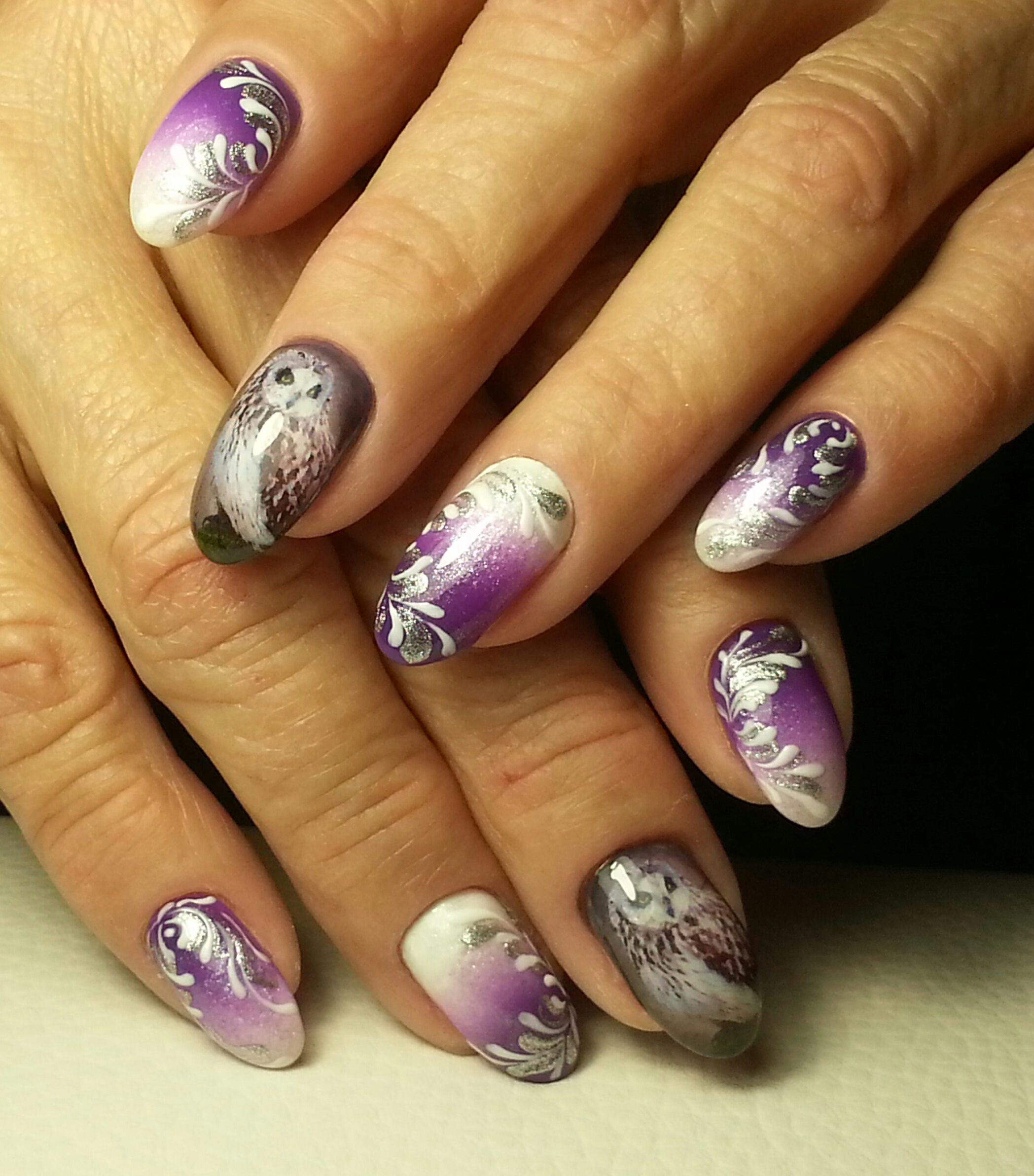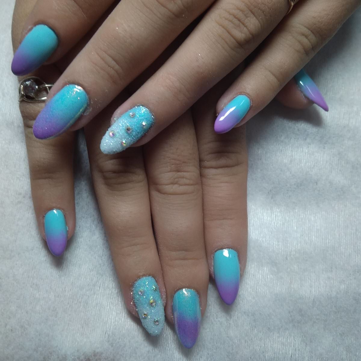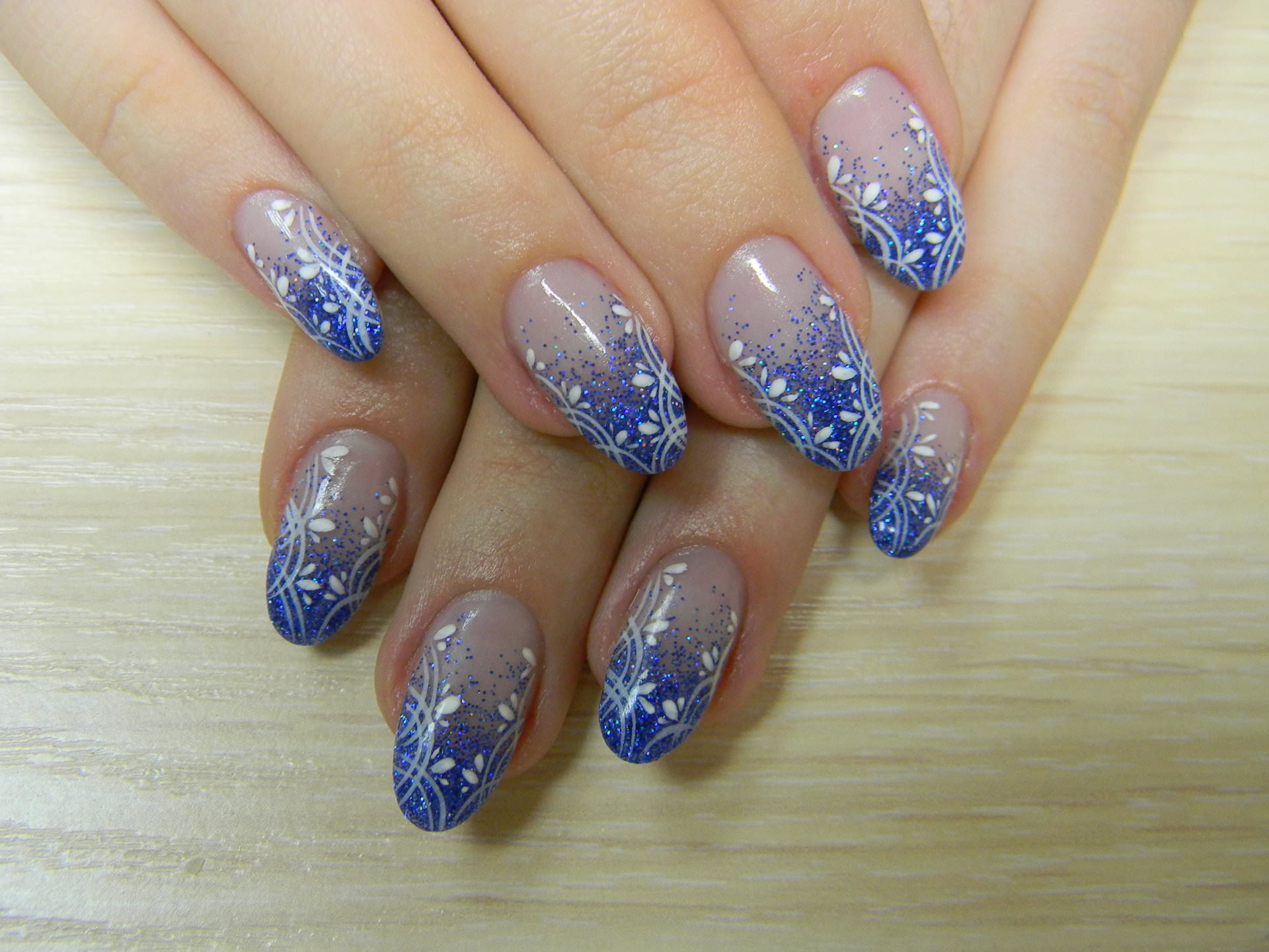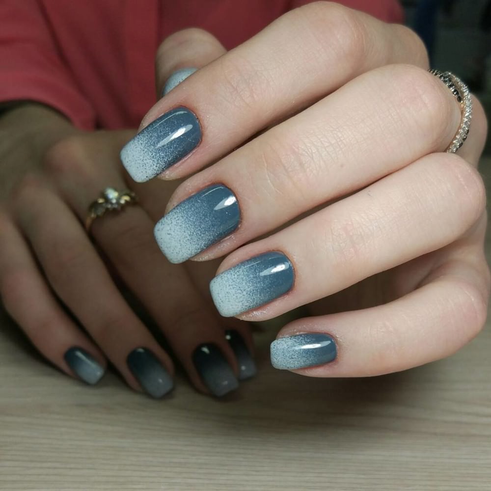 Another variant of winter design for long nails is ombre. It is logical to assume that from the others, the winter version differs in a color palette. In winter, these are all shades of blue combined with white.In addition, luxurious ombre looks in purple and other dark colors.