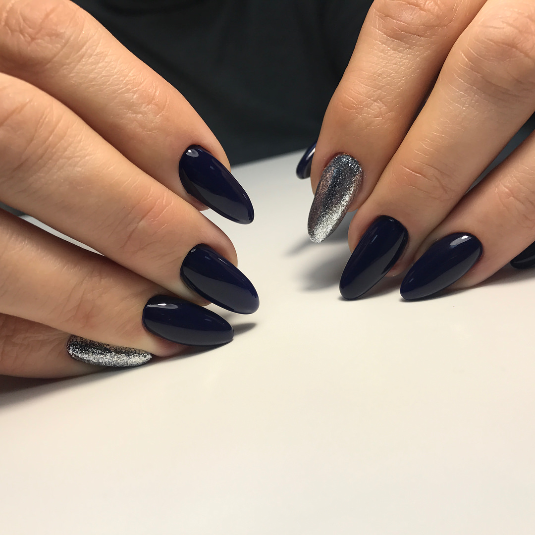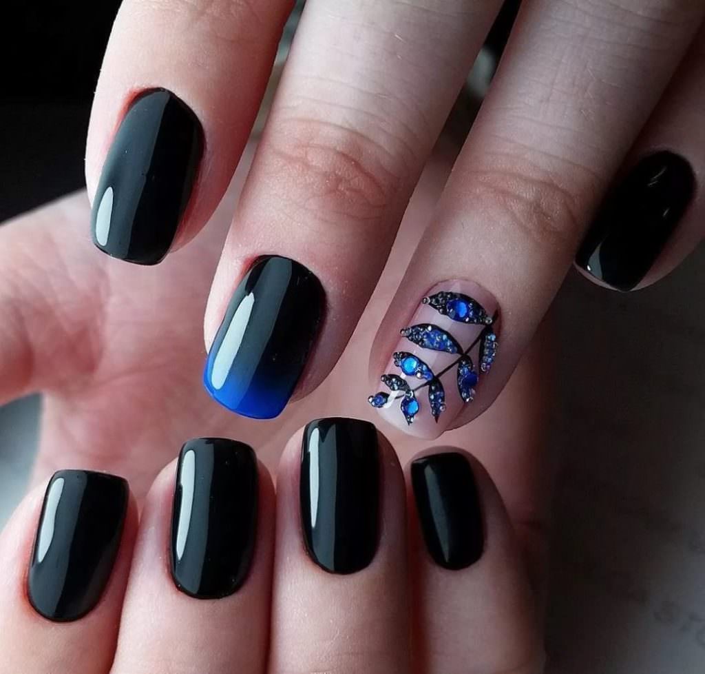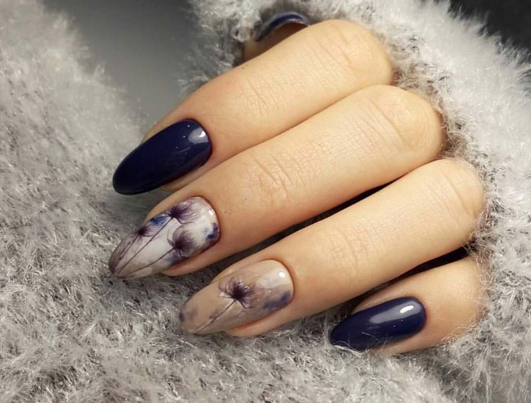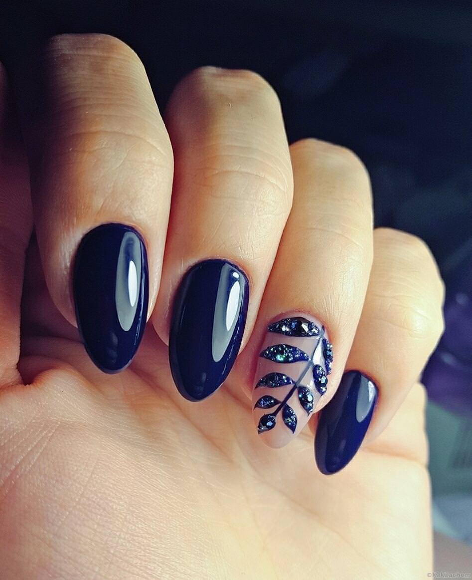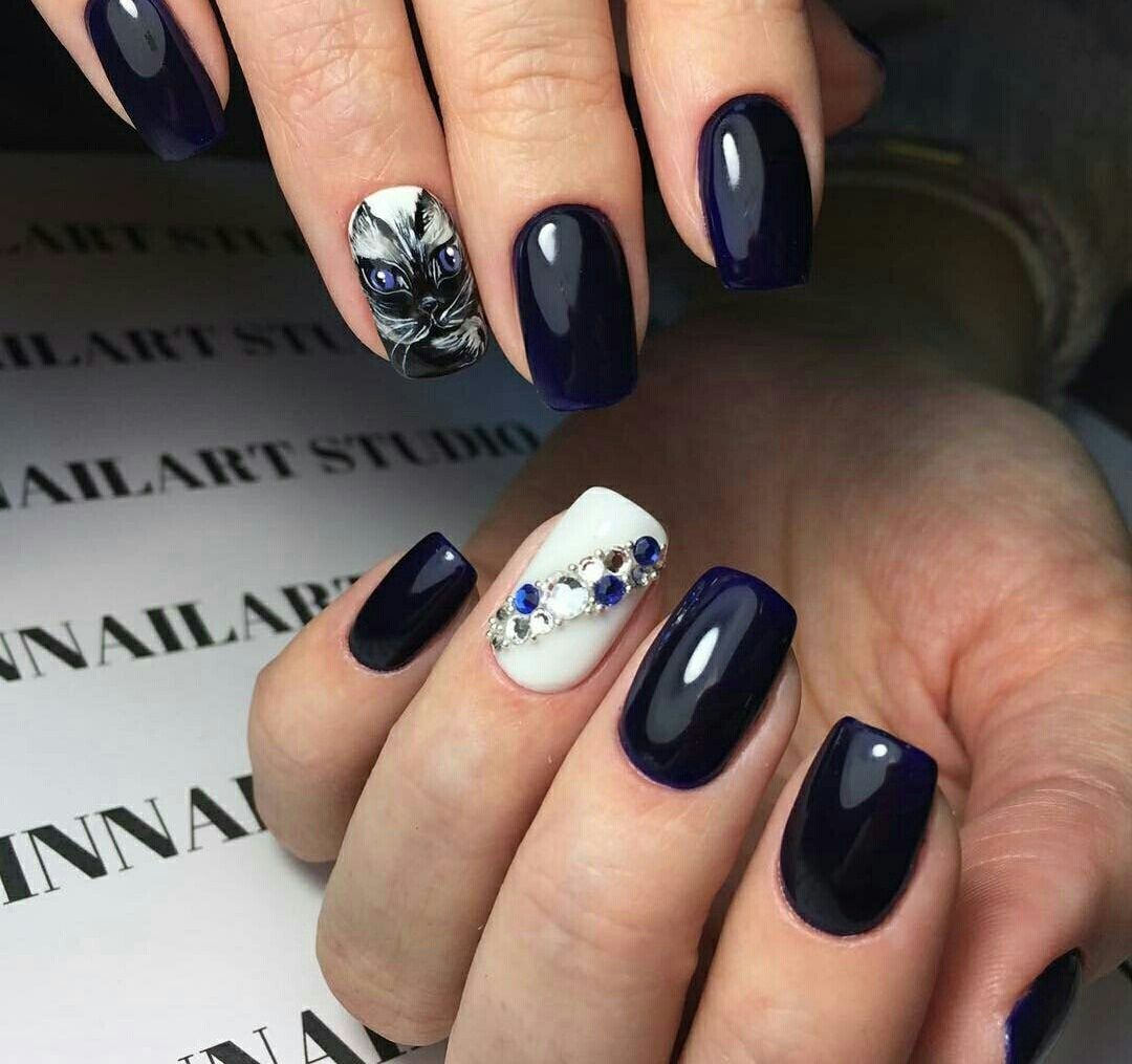 The dark blue tint is also gaining popularity among women. He received special love thanks to chic winter designs. However, at any other time of the year, a dark blue manicure will look great.