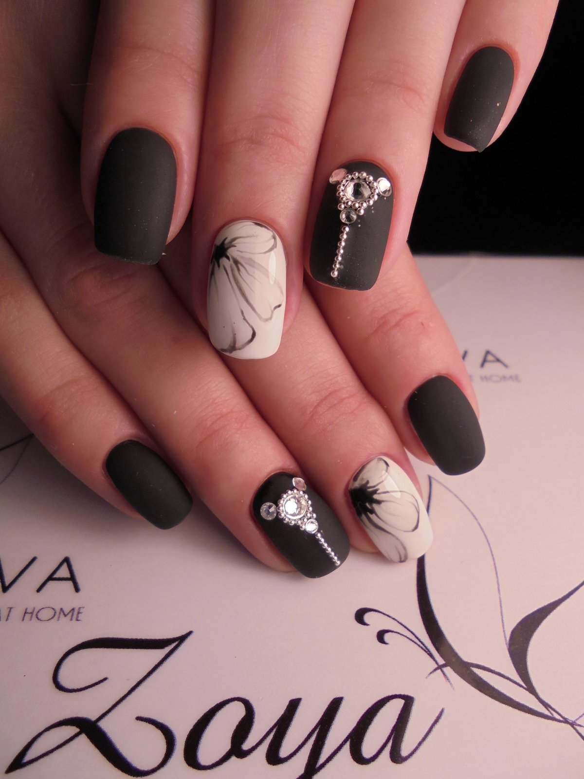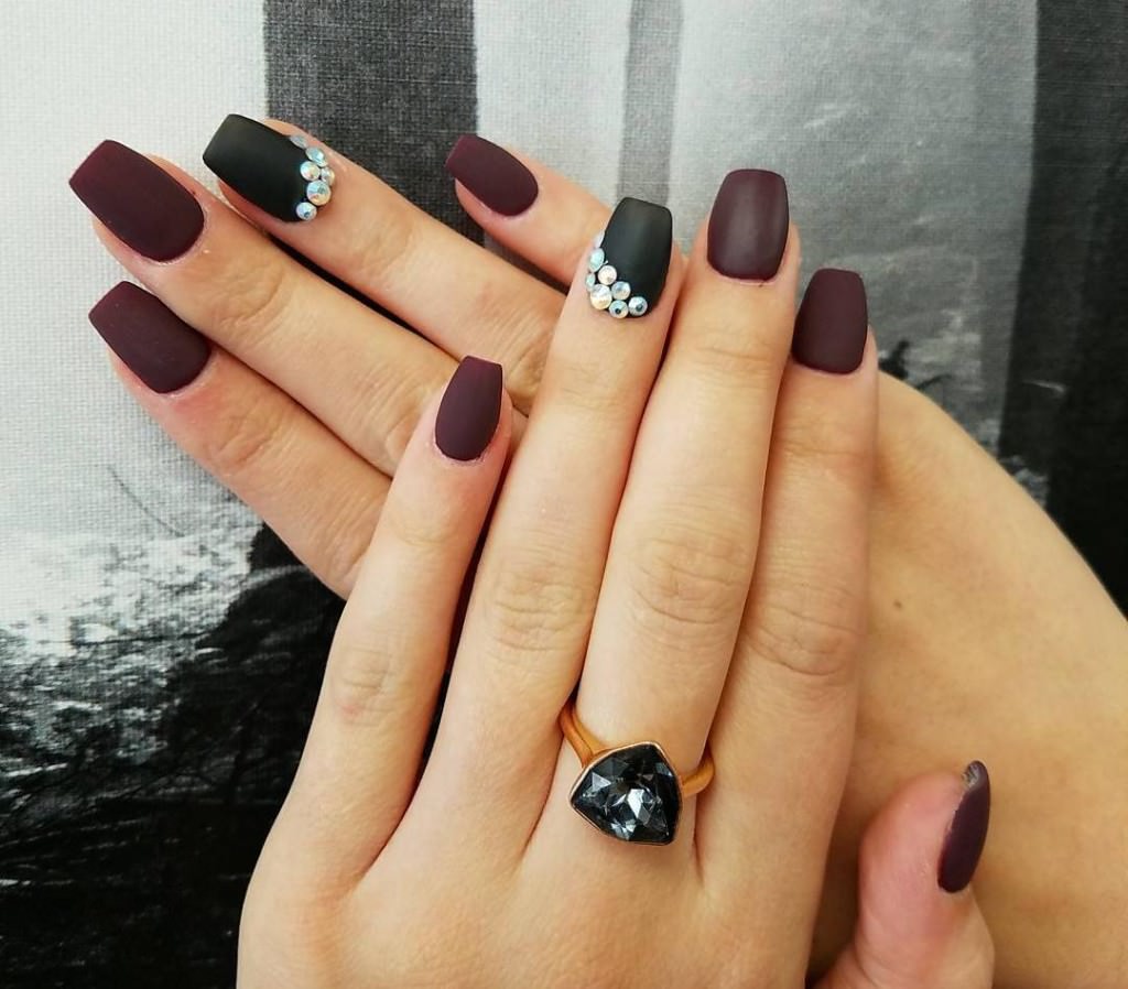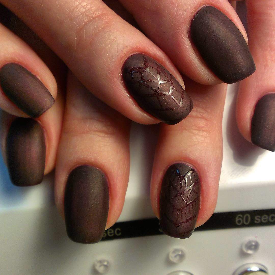 In general, a matte finish is increasingly replacing gloss. Although supporters of both of them are almost equally divided. Matte manicure in dark colors resembles a noble velvet.
