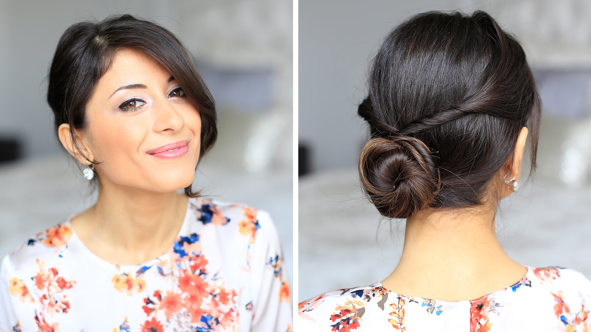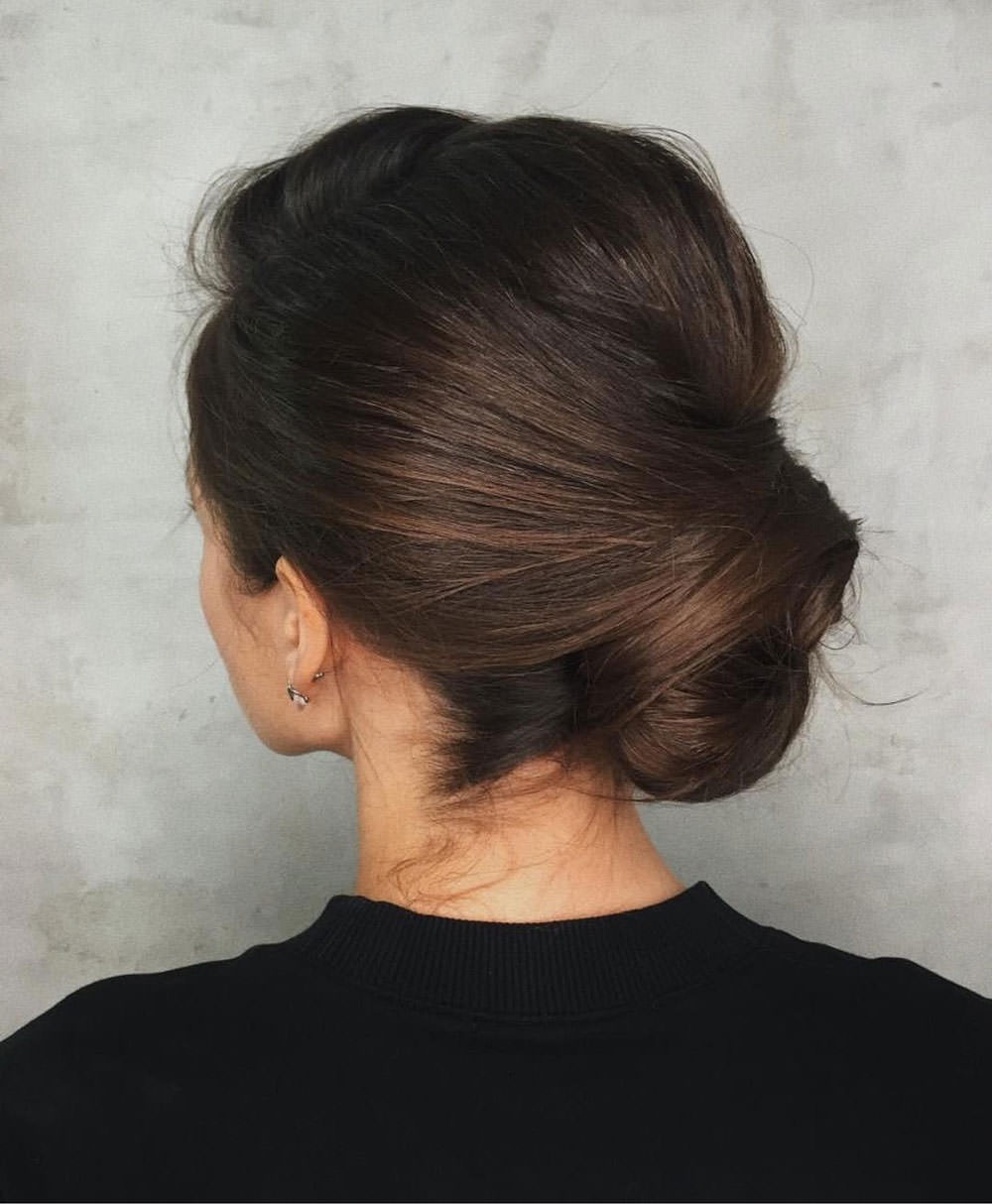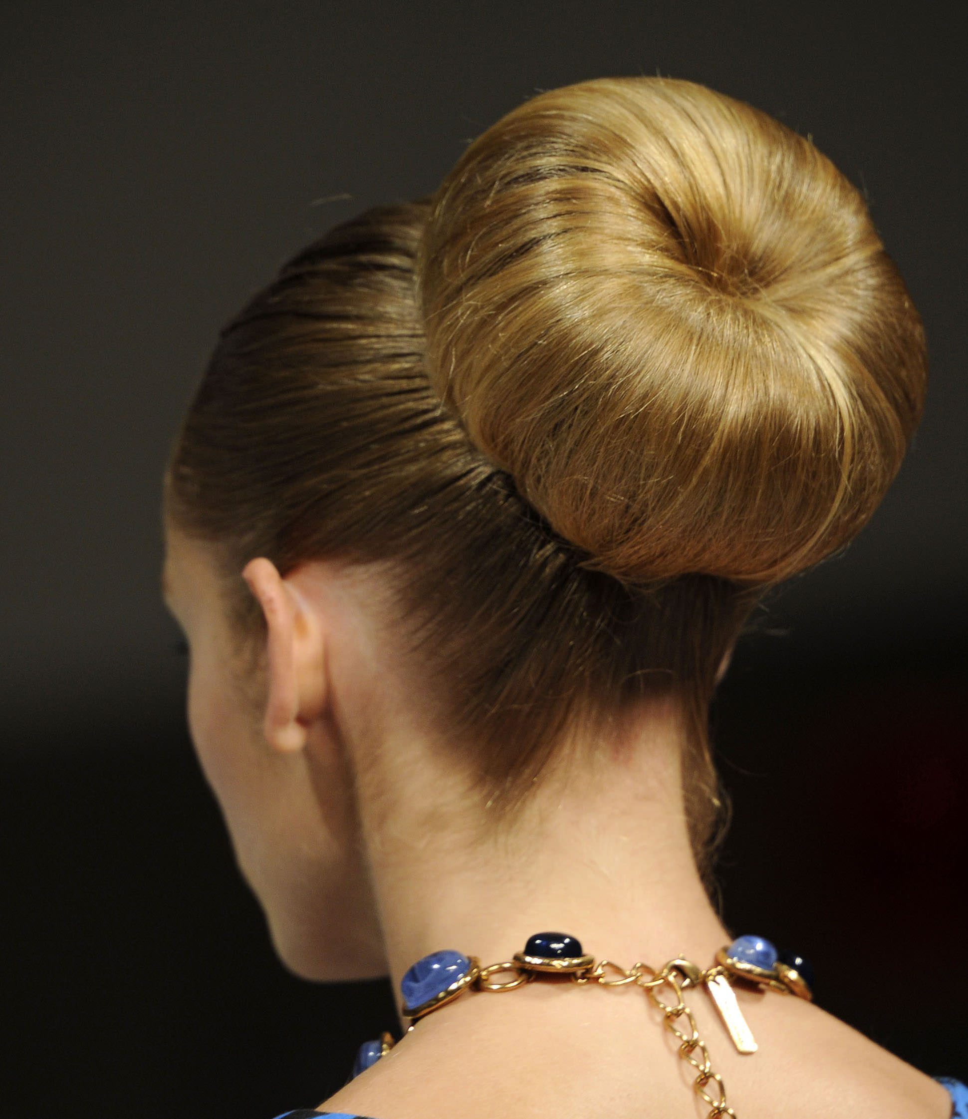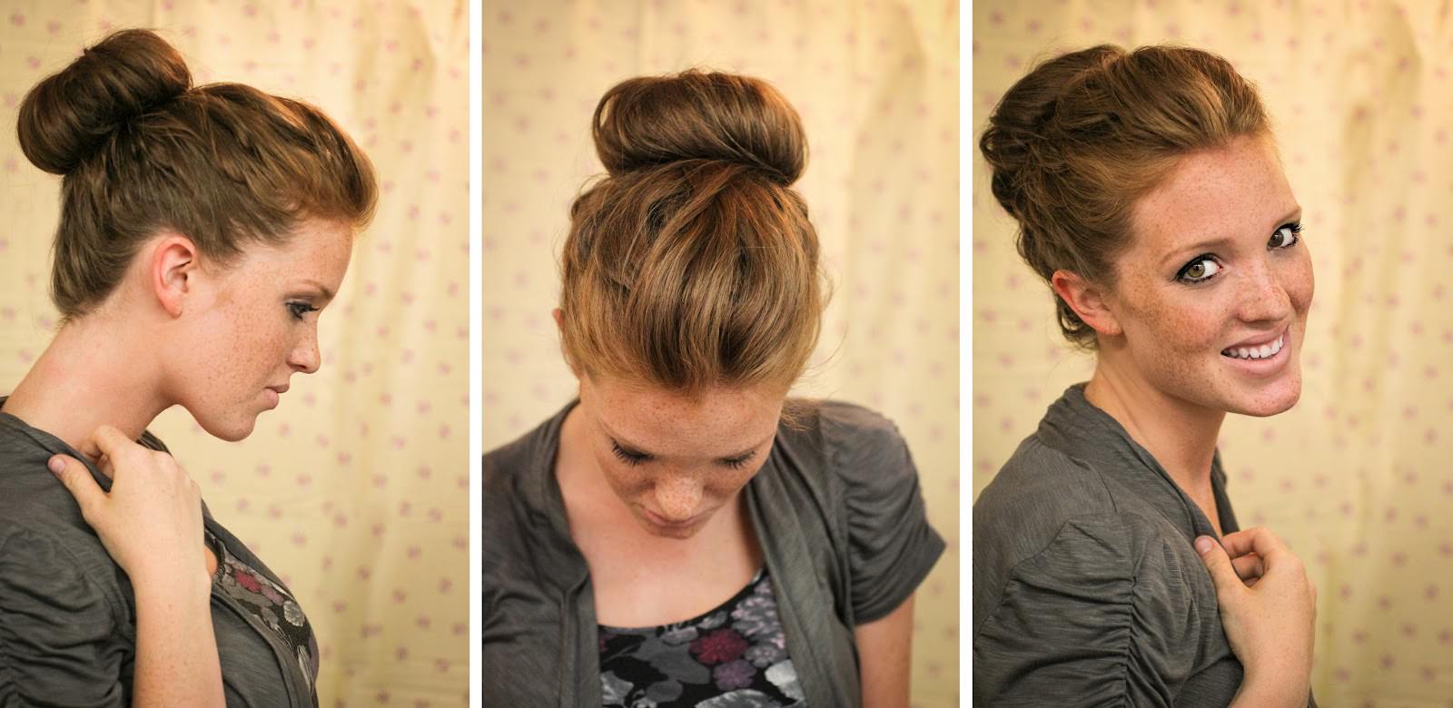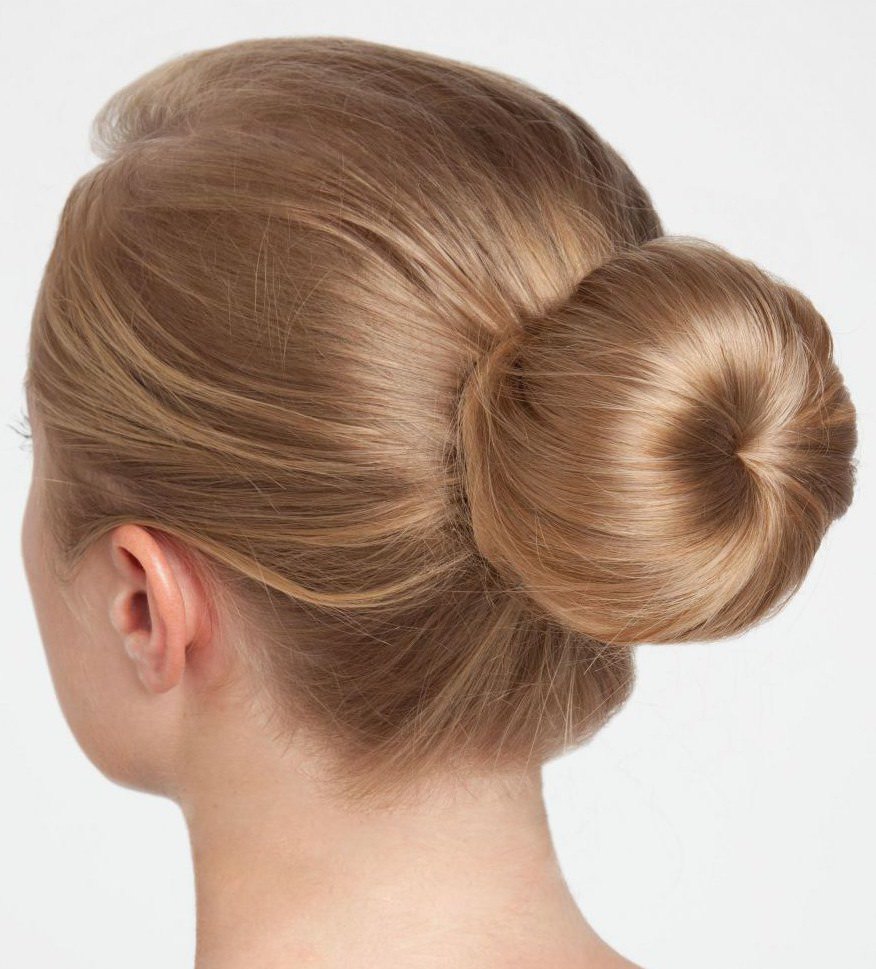 - The ends of the hair are either masked under the bun or wrapped around the base of the bun.