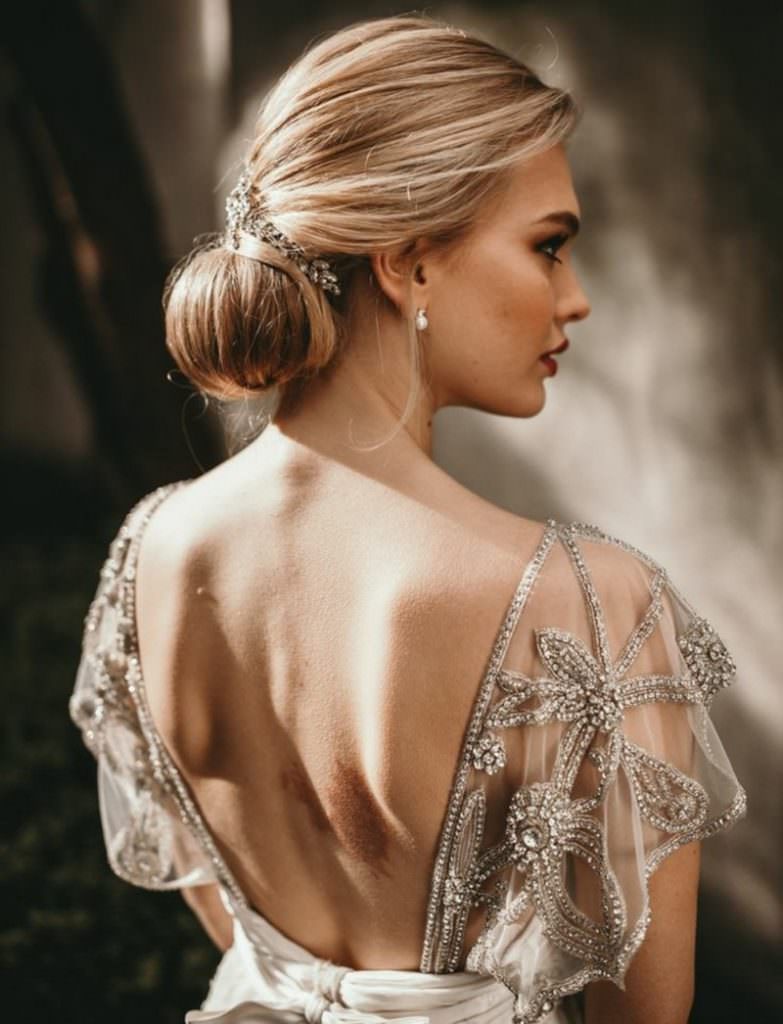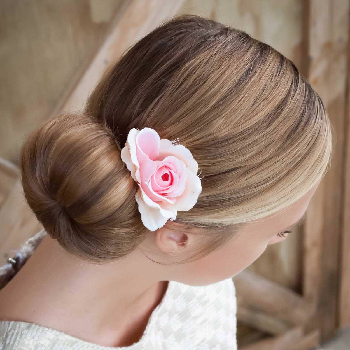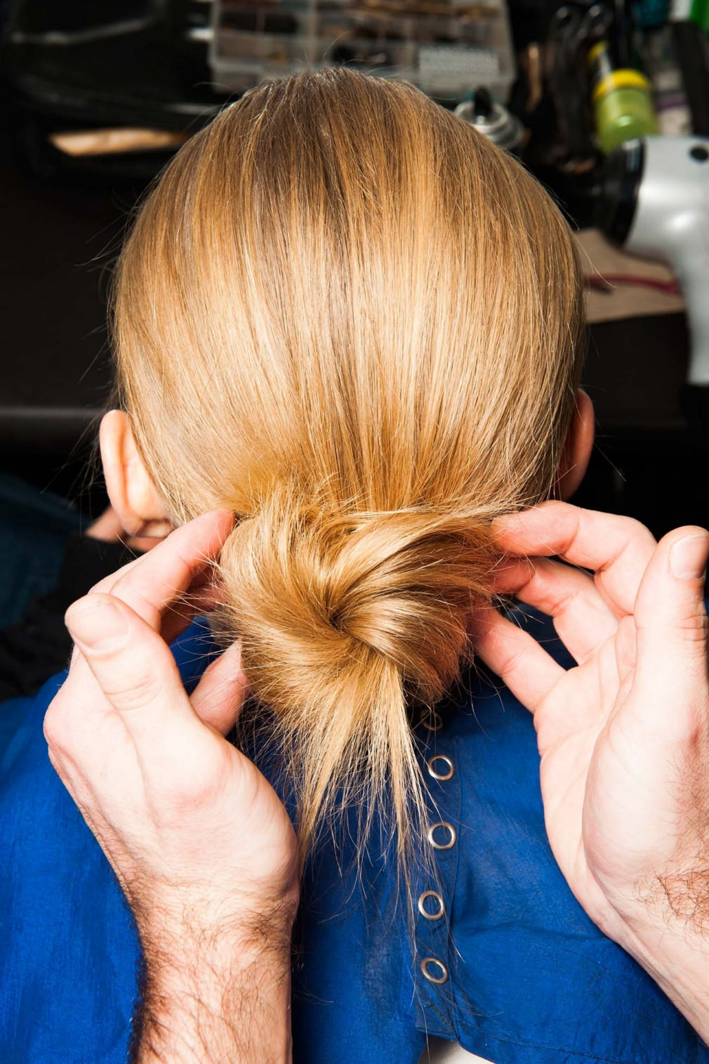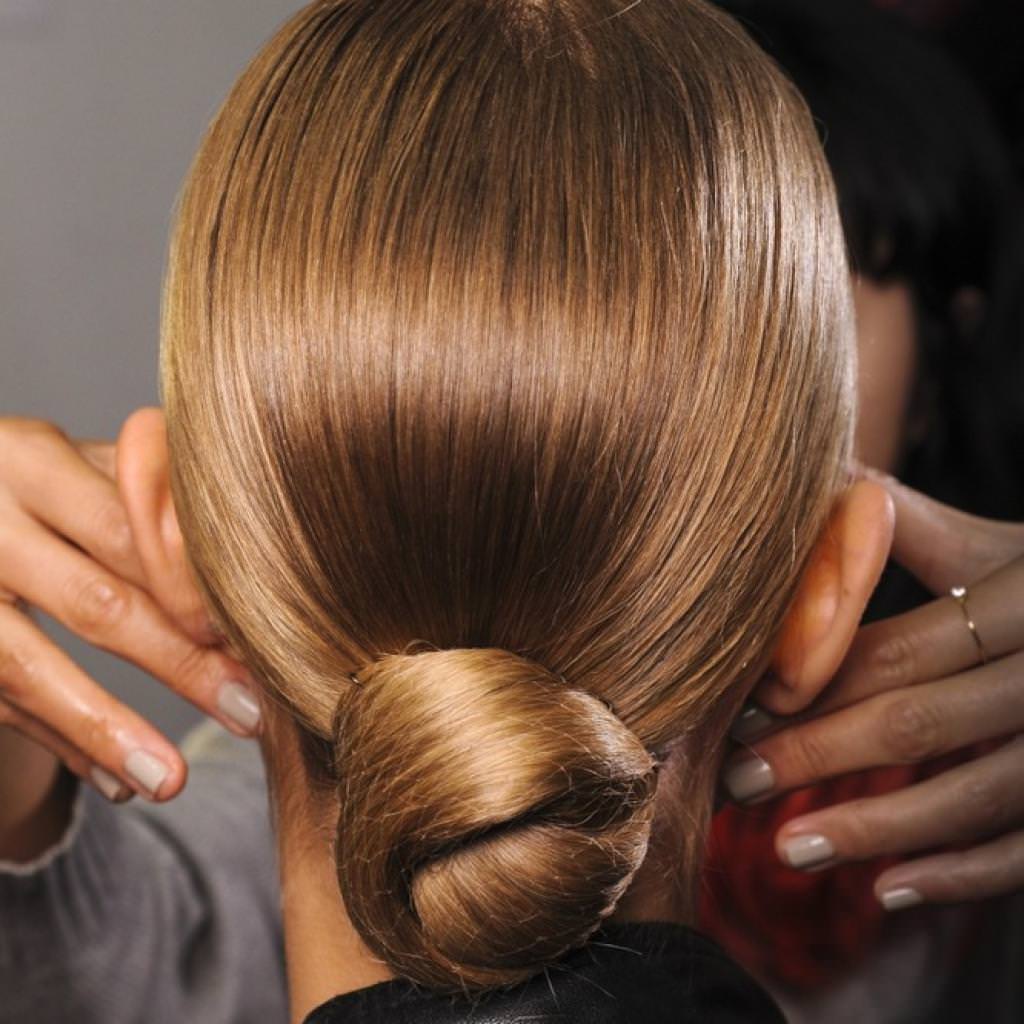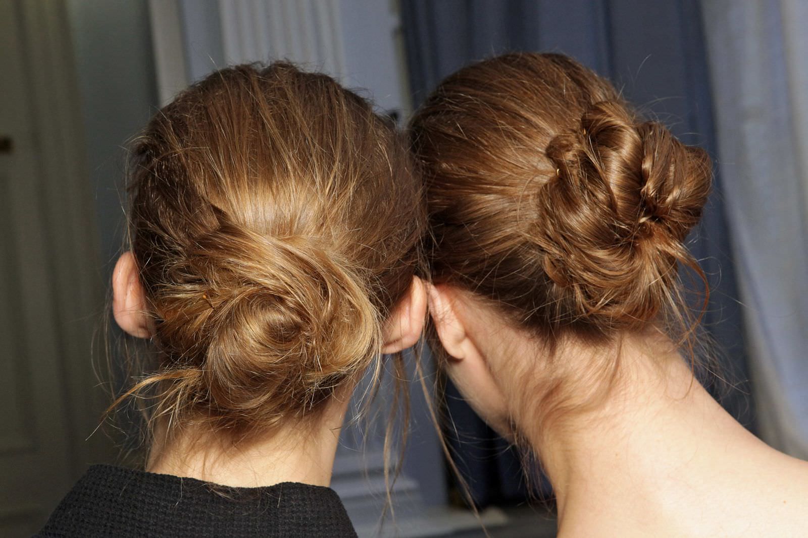 - The ends of the hair are either masked under the bun or wrapped around the base of the bun.