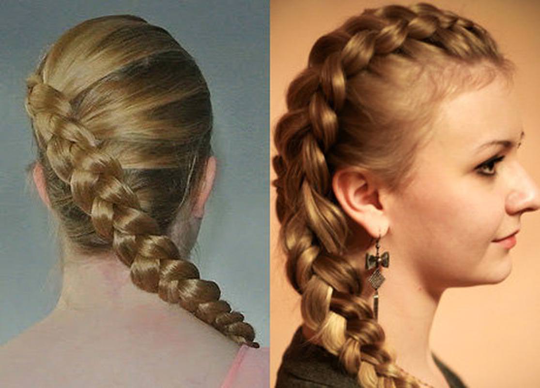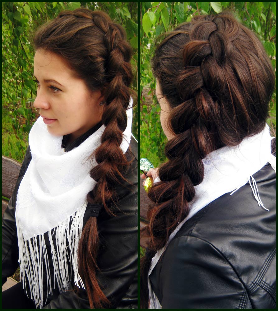 - Begin weaving from the forehead, initially separating the three strands, braid the steps of two ordinary braids.