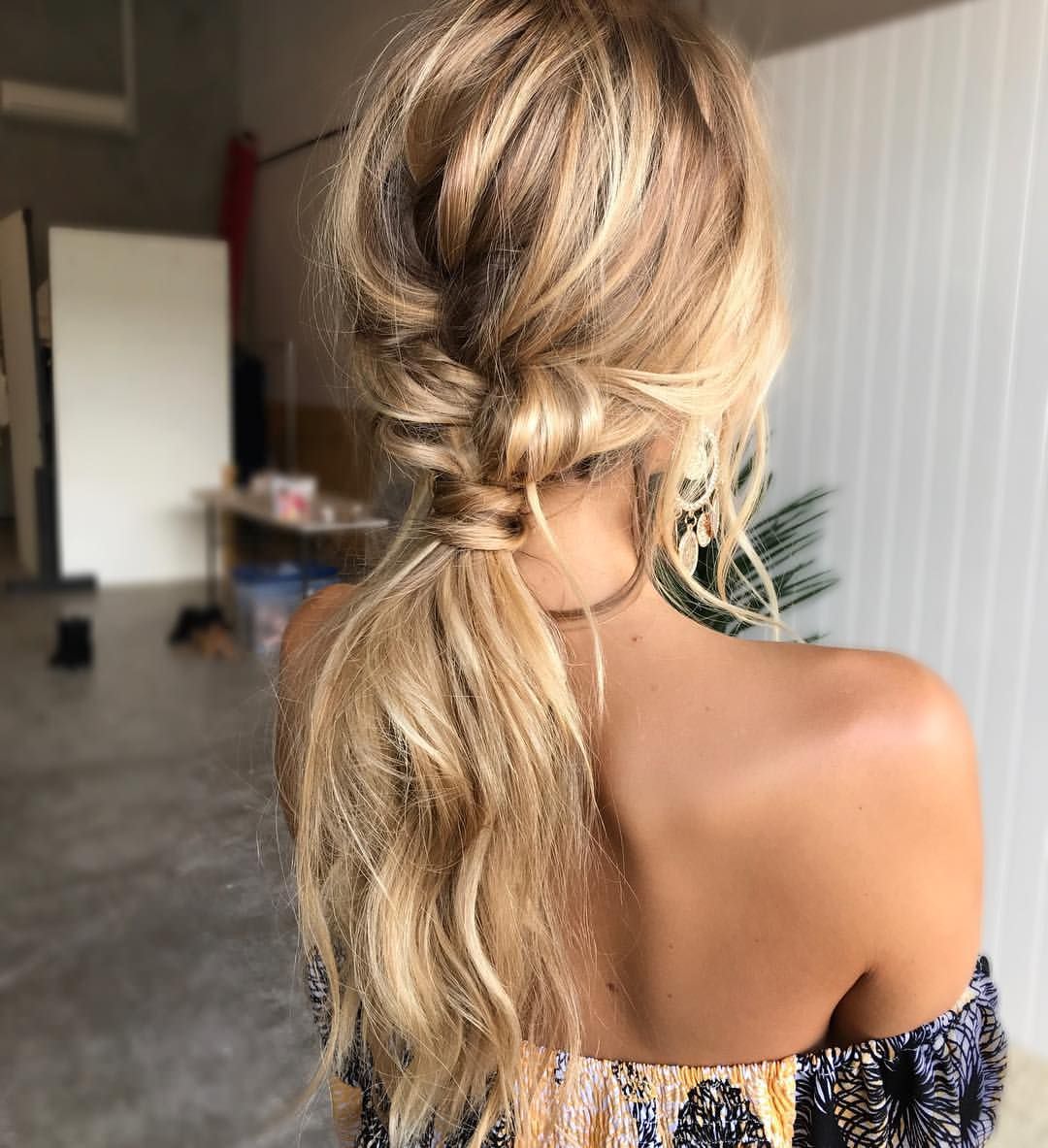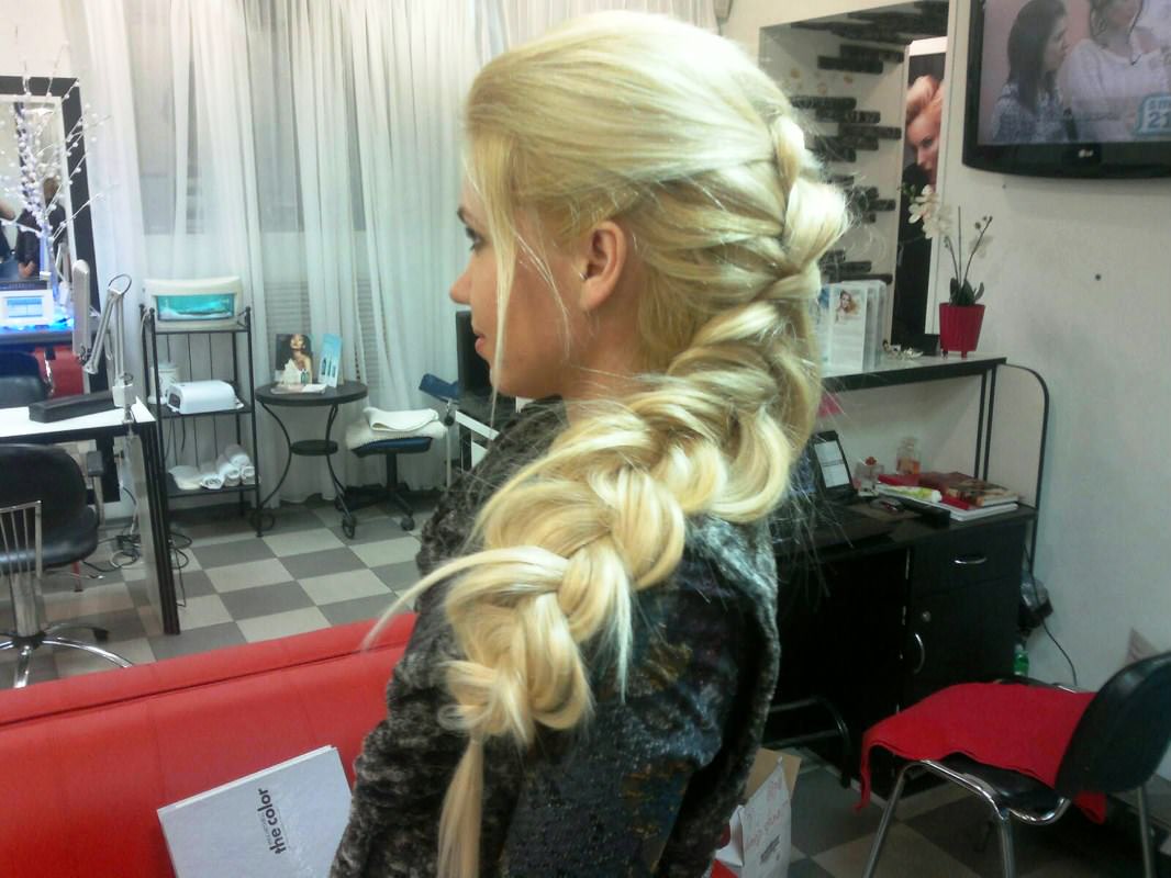 - Then start weaving the braid by twisting the strands from underneath and picking up loose curls on both sides. Weaving should not be made tight so that in the future the pigtail can easily be stretched.