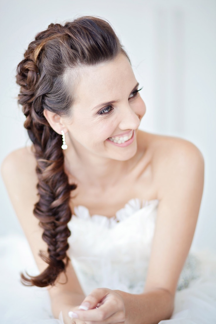 - For more romance during the weaving, leave a few thin curls on both sides, then wind them on a curling iron and pass between braided strands.