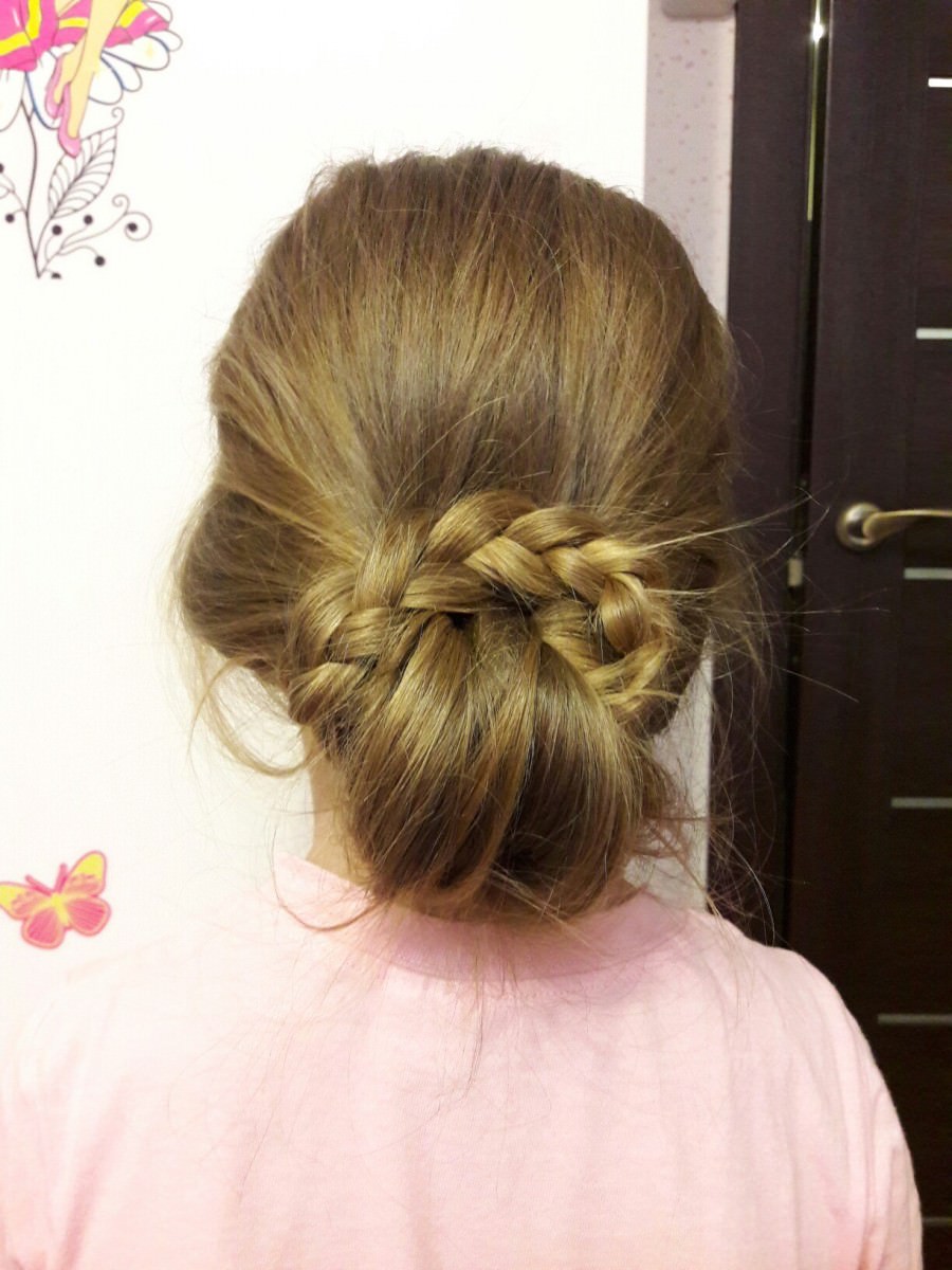- Then gradually, forming bundles from the rest of the hair, wrap them around the bundle, while fixing it with hairpins.