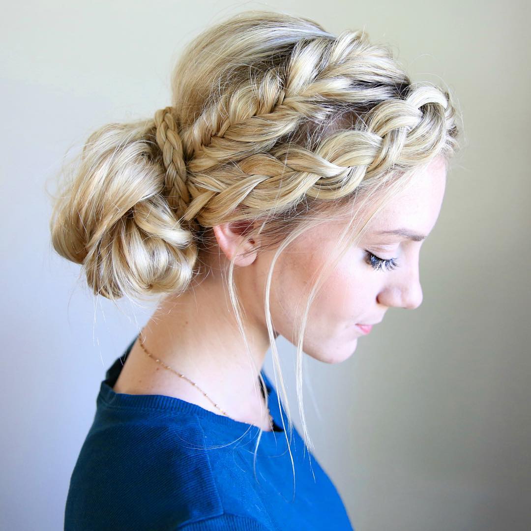The bunch is ideal for all seasons, since there are a lot of variations of this hairstyle and for each season you can choose your own. In addition, due to its versatility, it can be used both in everyday life and for any event. If you complement the bundle with an oblique or several braids, it will look more romantic and elegant. Also, such a hairstyle can be performed in the most common way with elastic and hairpins. But at this time is a good helper, "donut", especially an indispensable accessory for girls who do not have thick or long hair.
