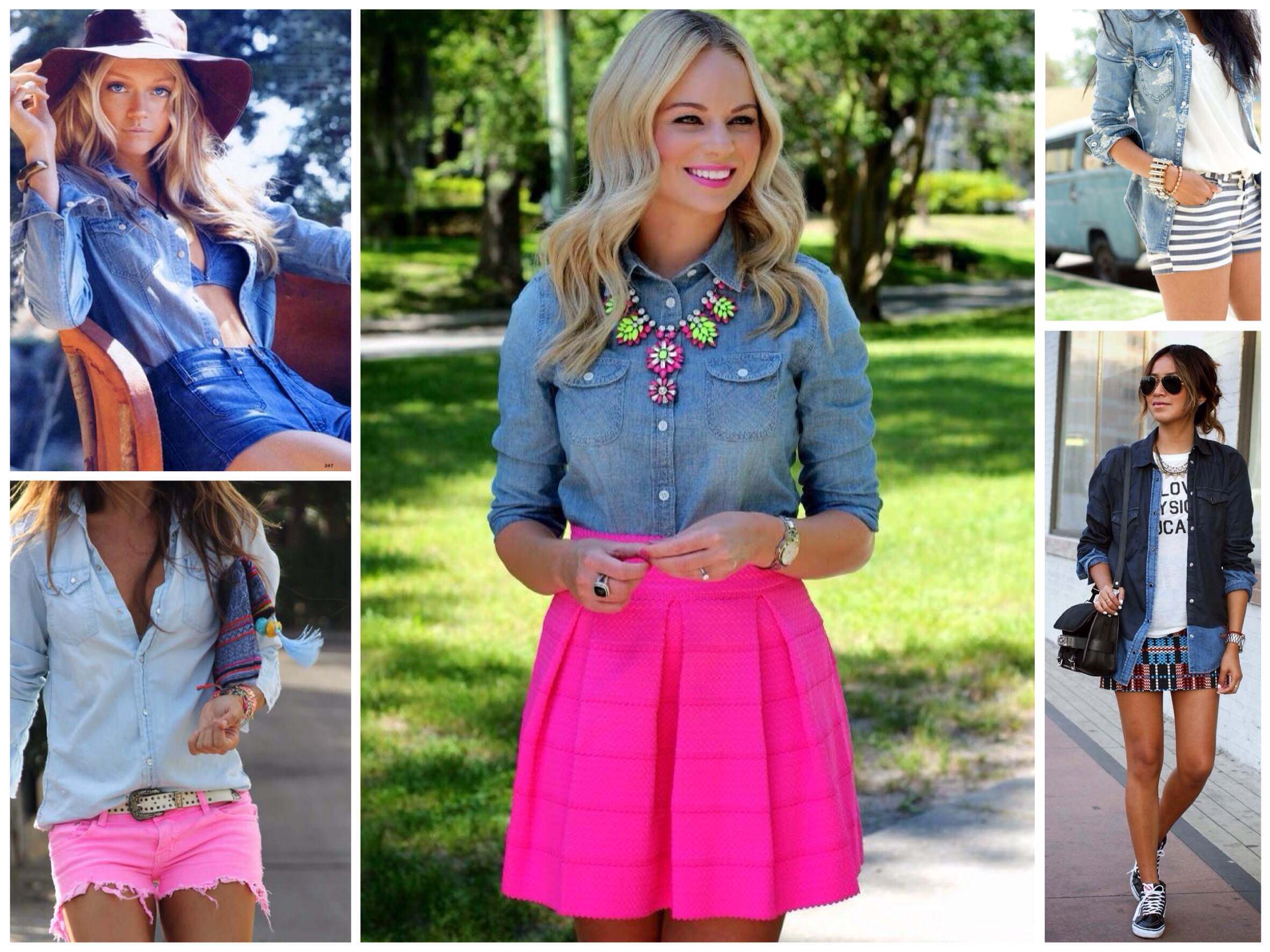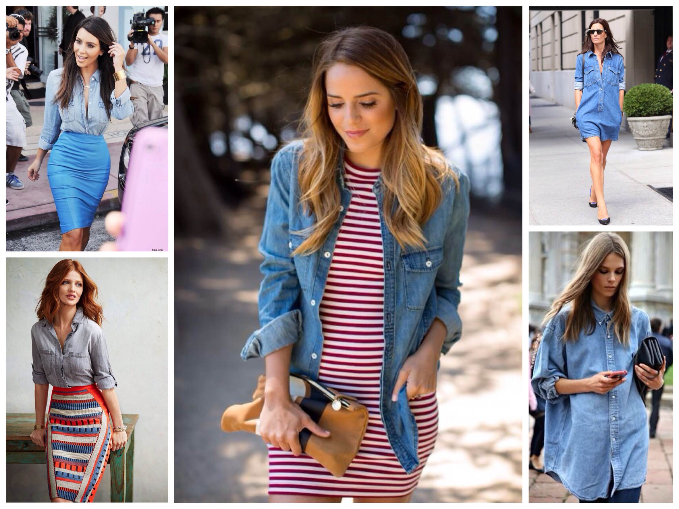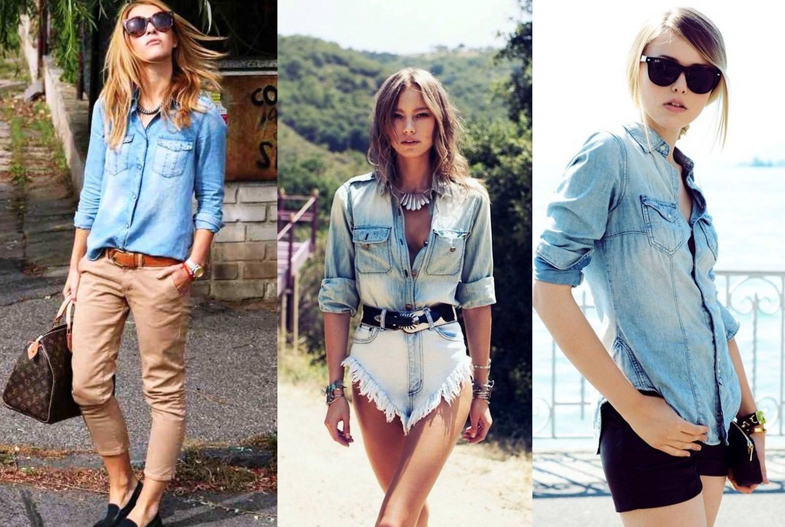 Such shirts are perfectly combined with ordinary trousers of almost any color, with shorts and even with a skirt. A voluminous denim shirt tucked into a pencil skirt looks gorgeous.