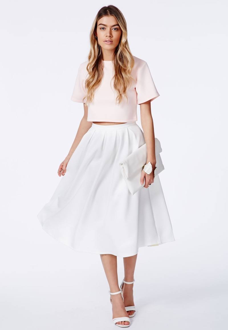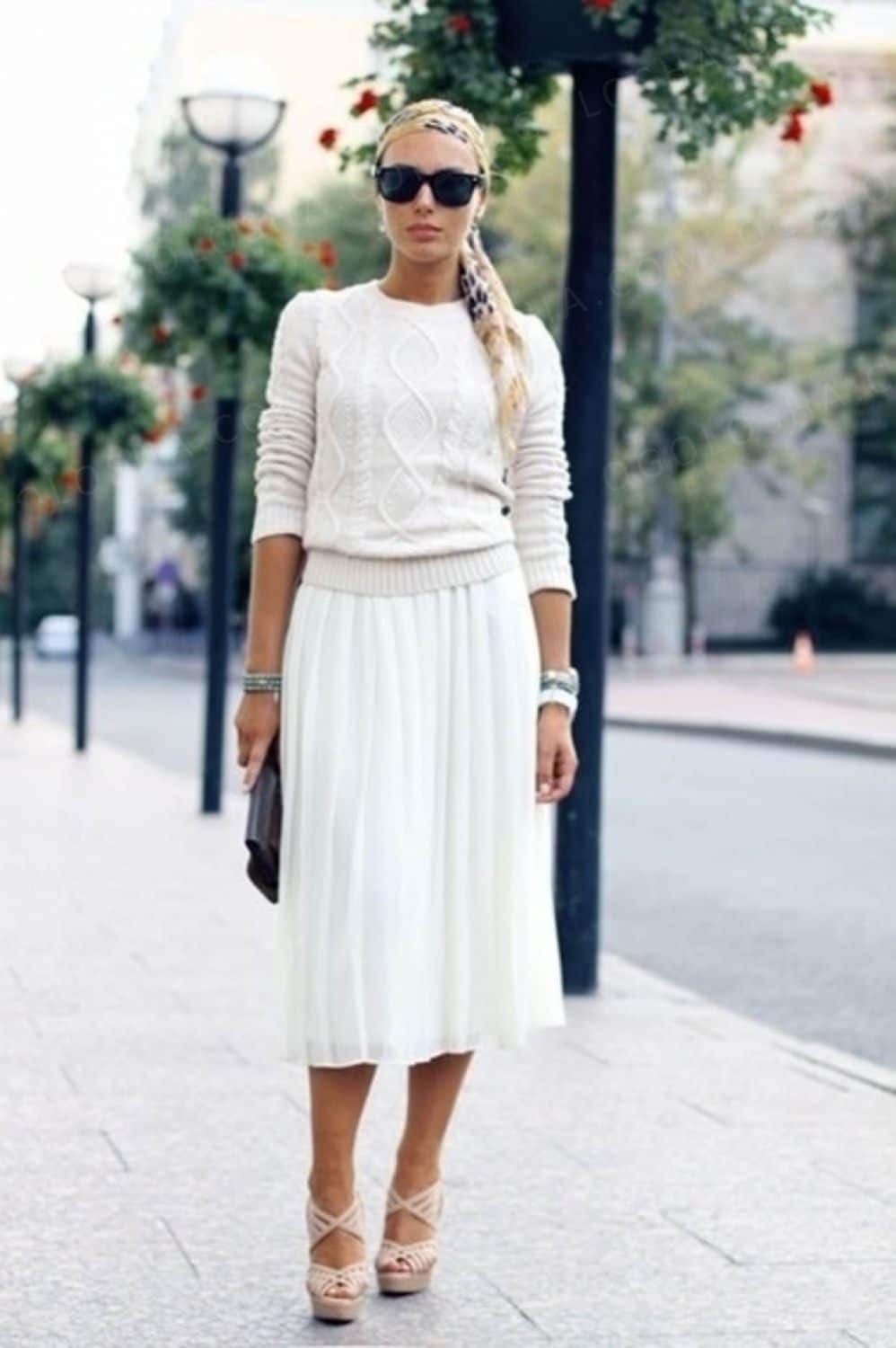 A pencil skirt is a classic office look. A white pencil skirt goes well with any blouse, fitted tops and cardigans. A pencil skirt visually stretches the figure and gives it harmony. A white pencil skirt combined with a tucked-in black top or blouse is perfect for the office. If you want a brighter summer option, compose a white pencil skirt with a bright top or T-shirt and the walking option is ready.