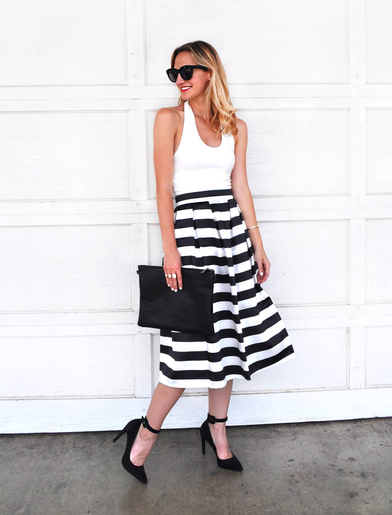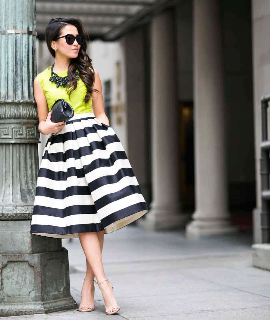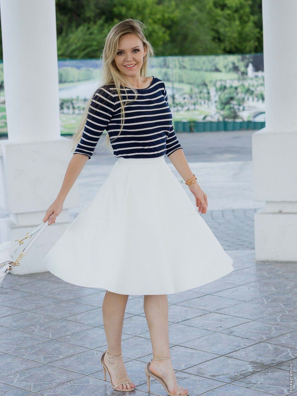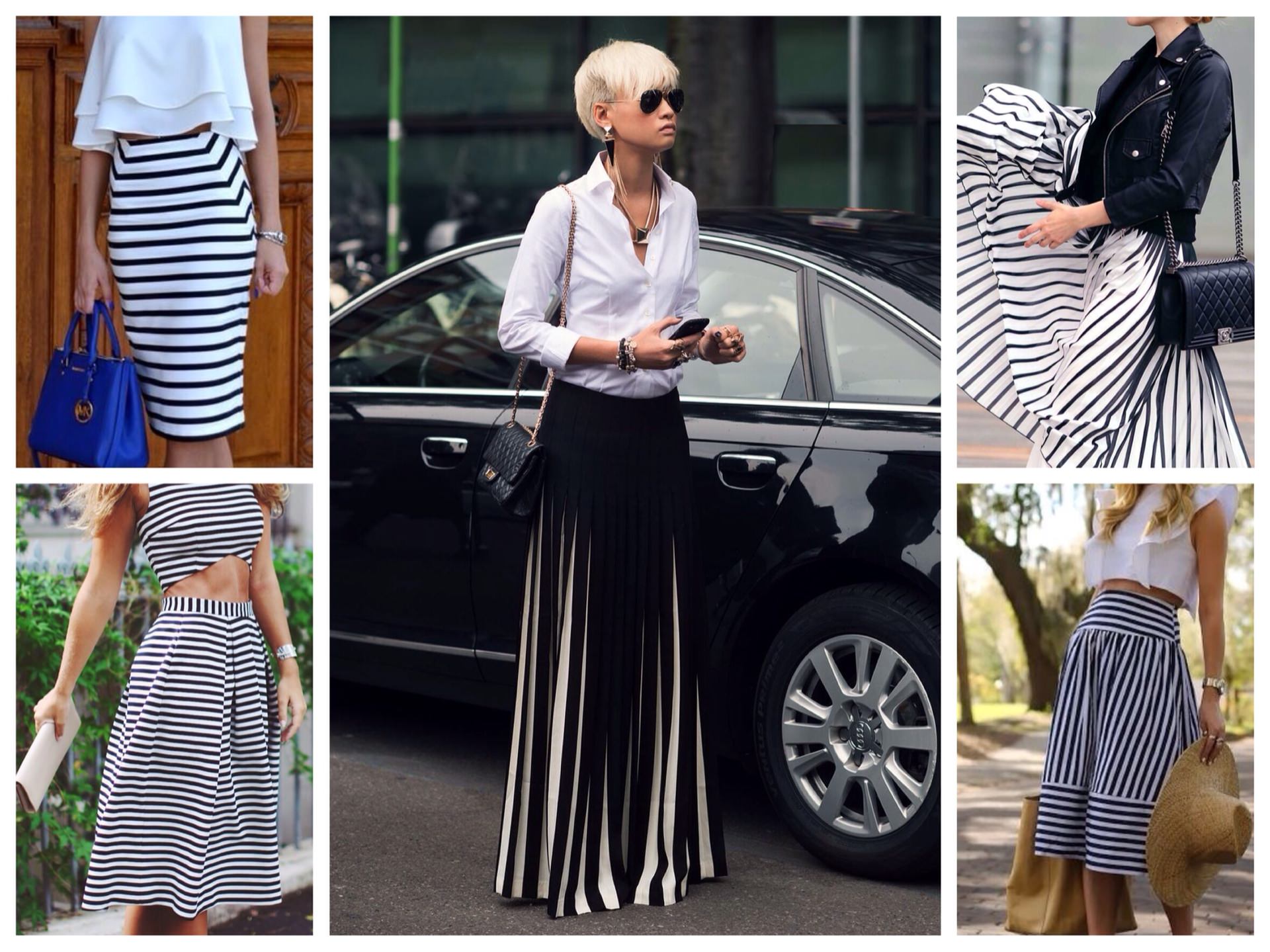 An undoubted hit of this season is a white striped skirt. It is ideal to refresh the office summer look.