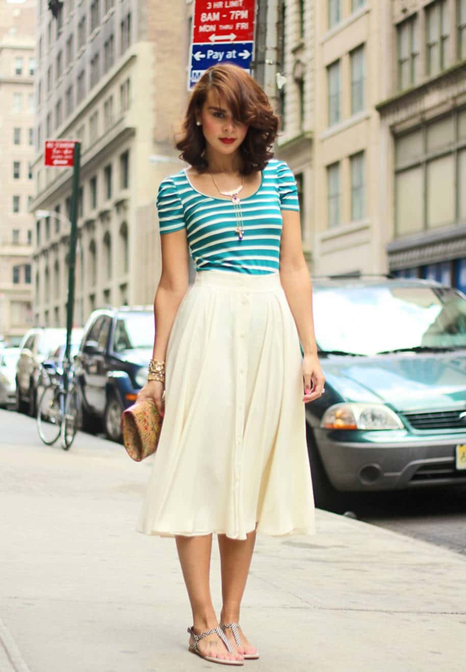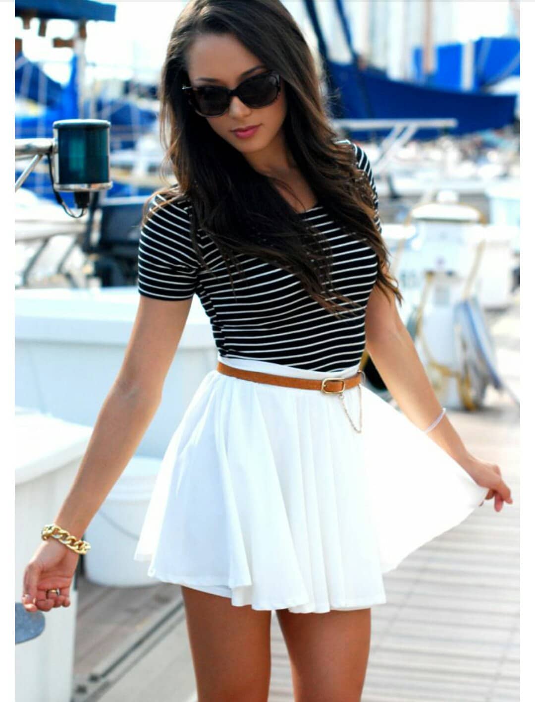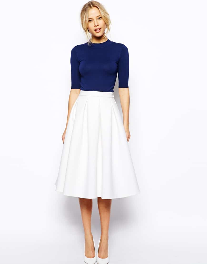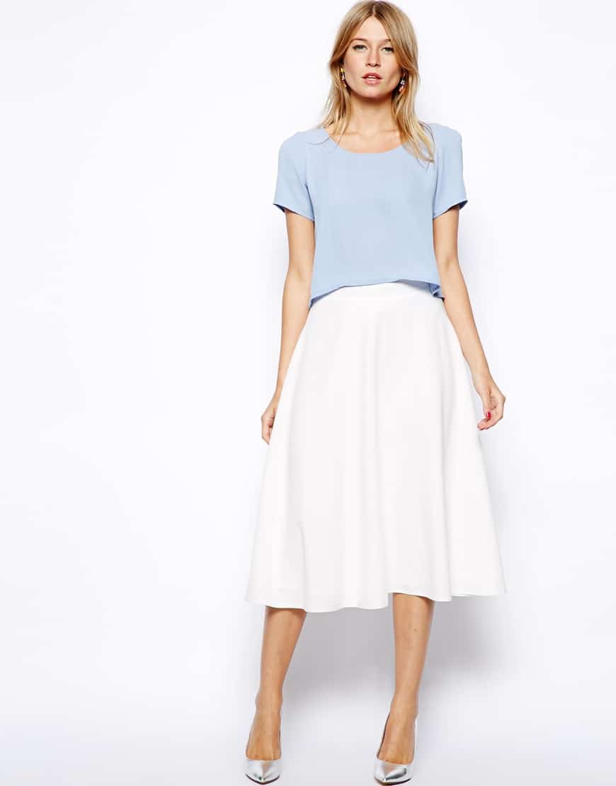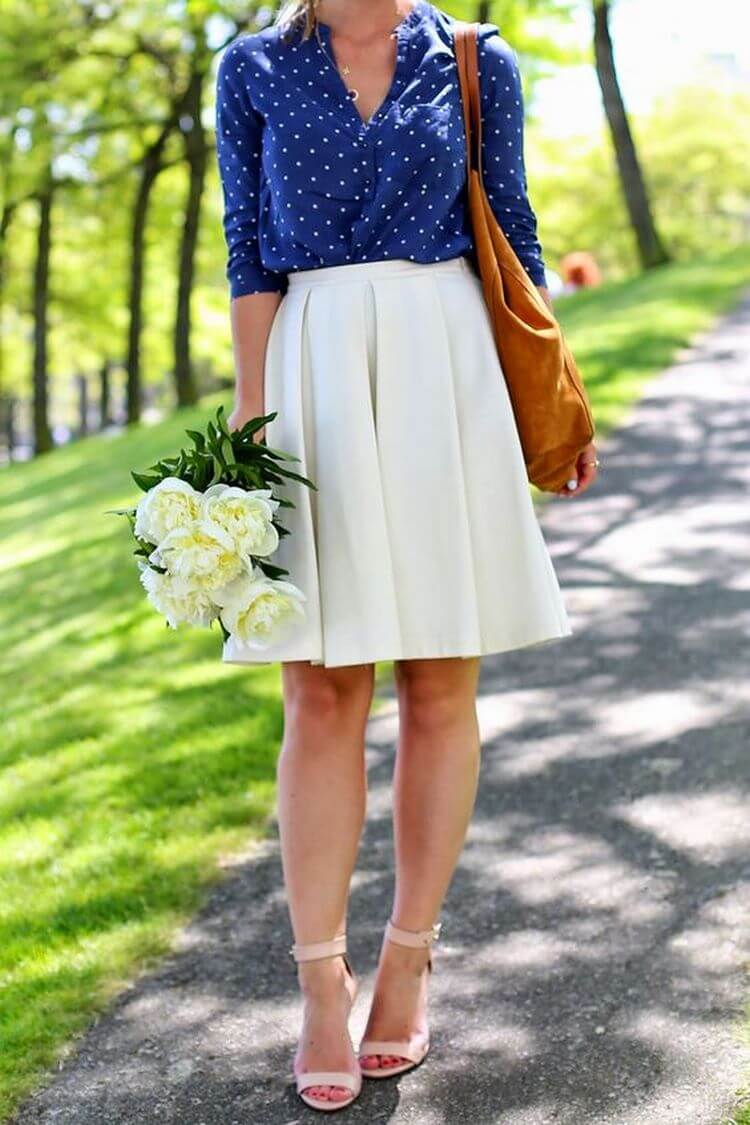 You can wear a white skirt with blouses, sweaters, T-shirts and tops in almost any color.